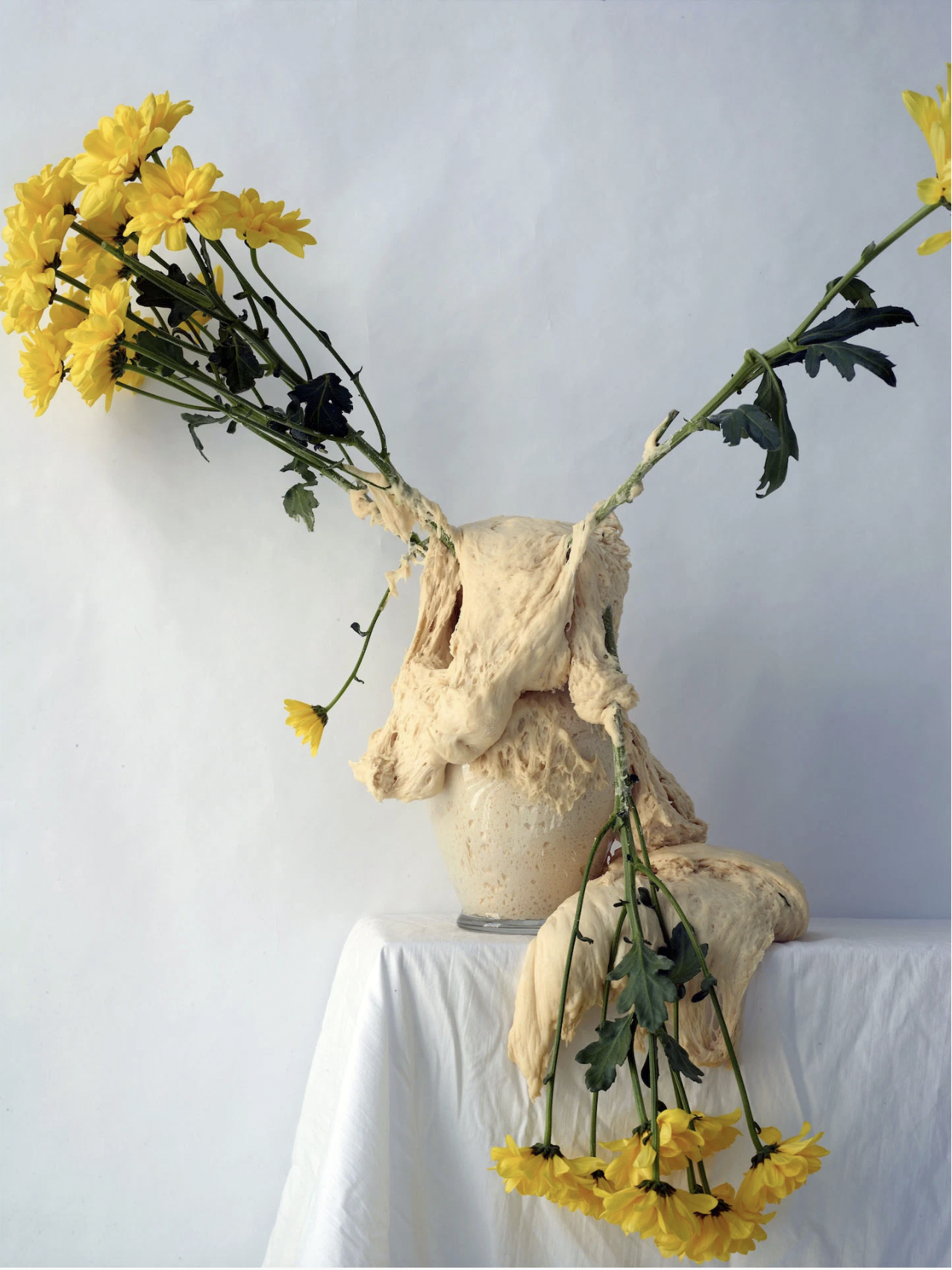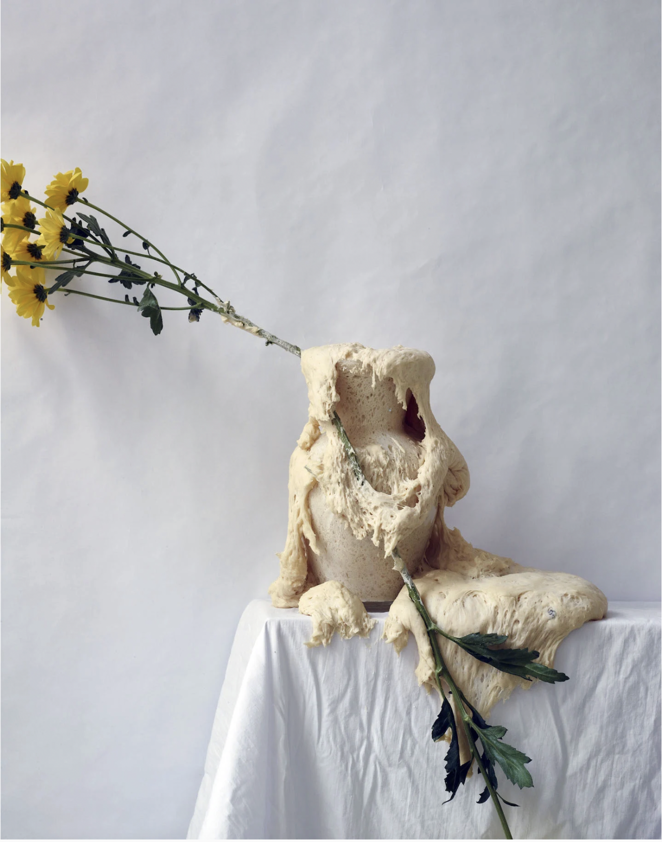 This work extends Santina Amato’s long-standing investigation into domestic space, material precarity, and feminized labor. Recasting the classical still-life tradition, Amato replaces symbolic fruit and flowers with bread dough — a living, unstable material loaded with cultural memory and the repetitive labor of nourishment. Positioned alongside everyday household objects, the dough becomes an active force rather than a passive ingredient, swelling, sinking, and shifting the balance of each composition. In doing so, Amato transforms familiar domestic items into carriers of tension, vulnerability, and time. The work highlights the instability embedded within home and routine, while foregrounding the often-invisible labor historically assigned to women and caregivers. Through this quietly disruptive material intervention, Amato reorients the still-life genre toward themes of embodiment, migration, and the fragility of domestic stability, inviting viewers to reconsider the emotional and political weight of ordinary objects.