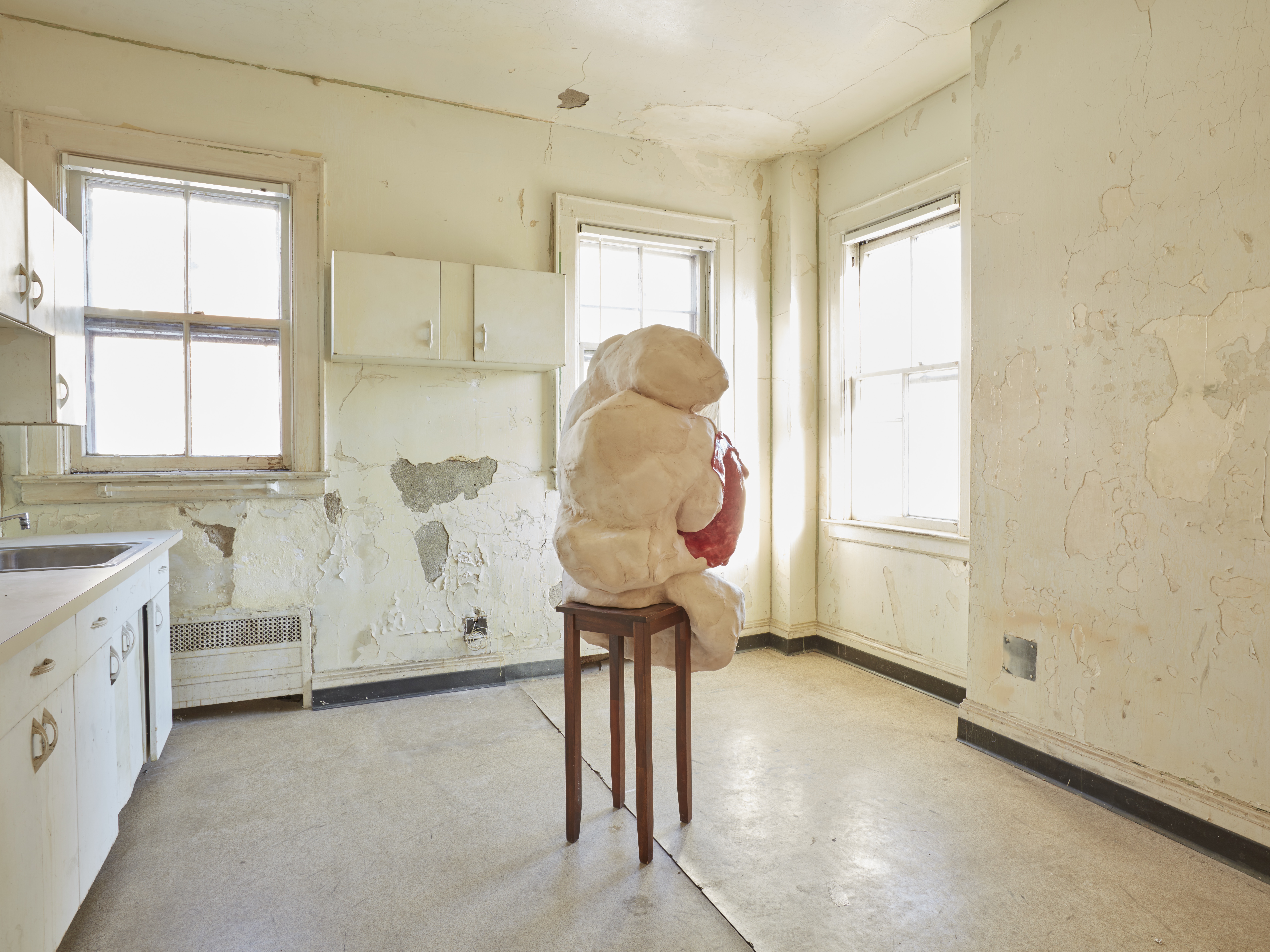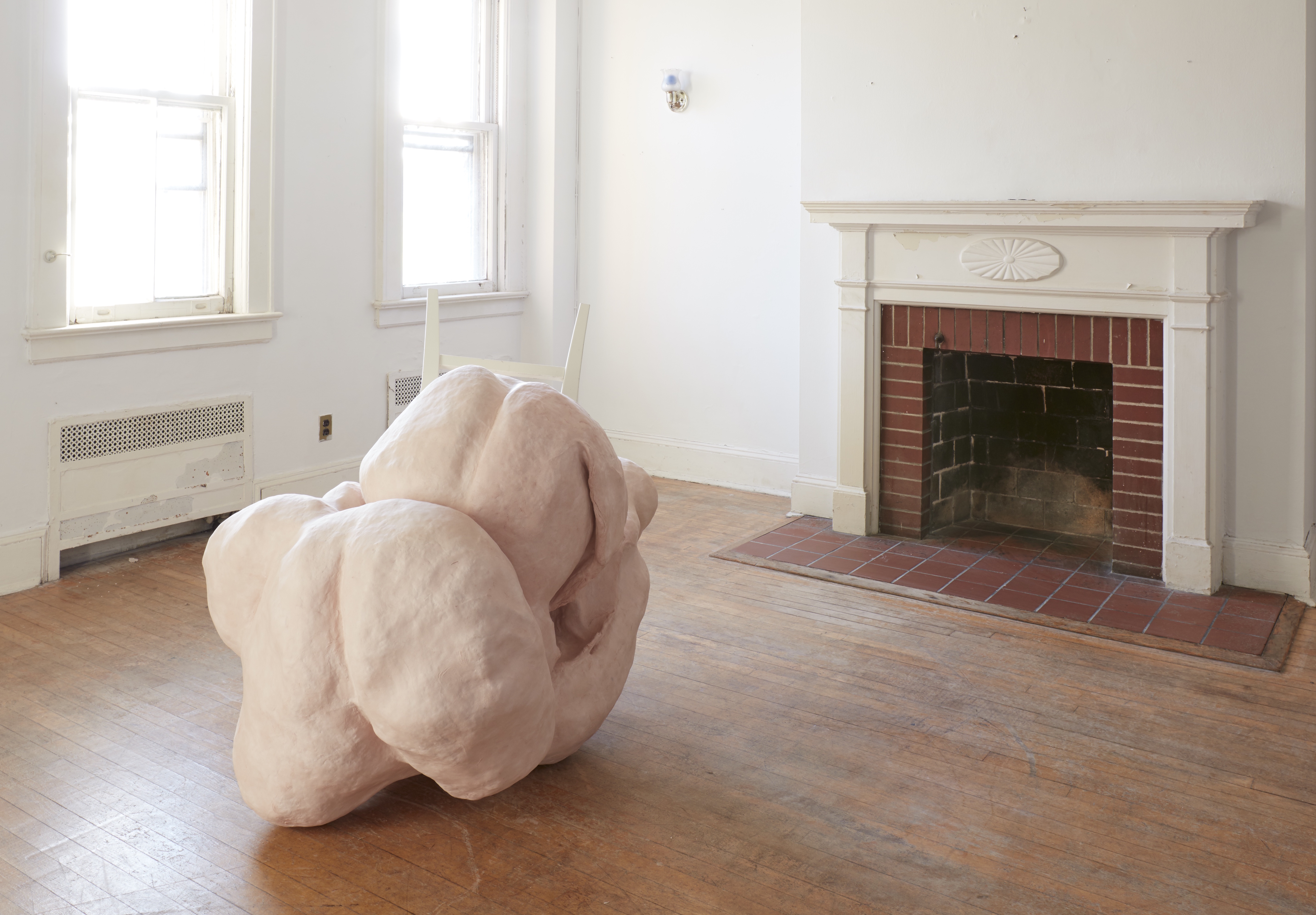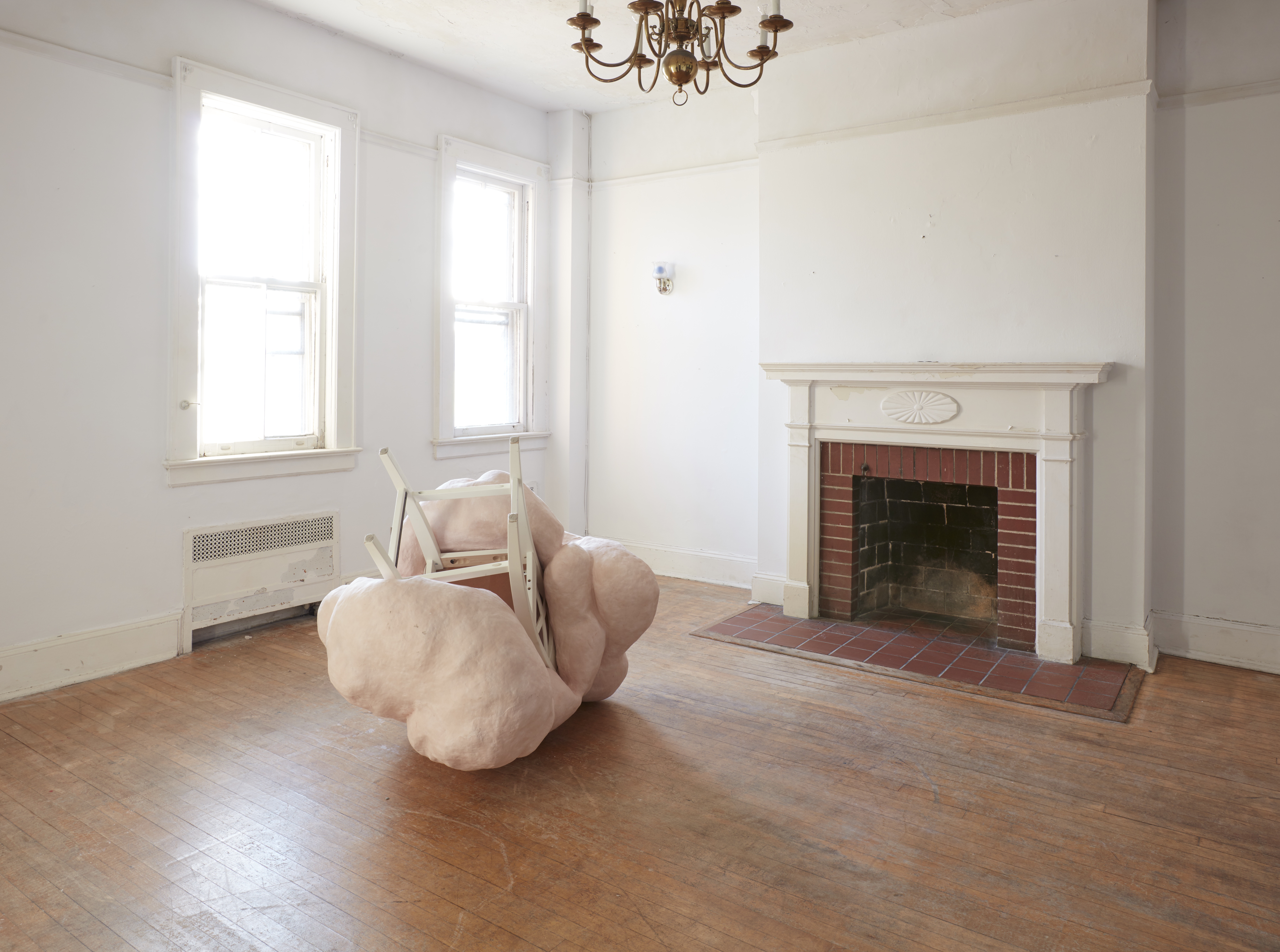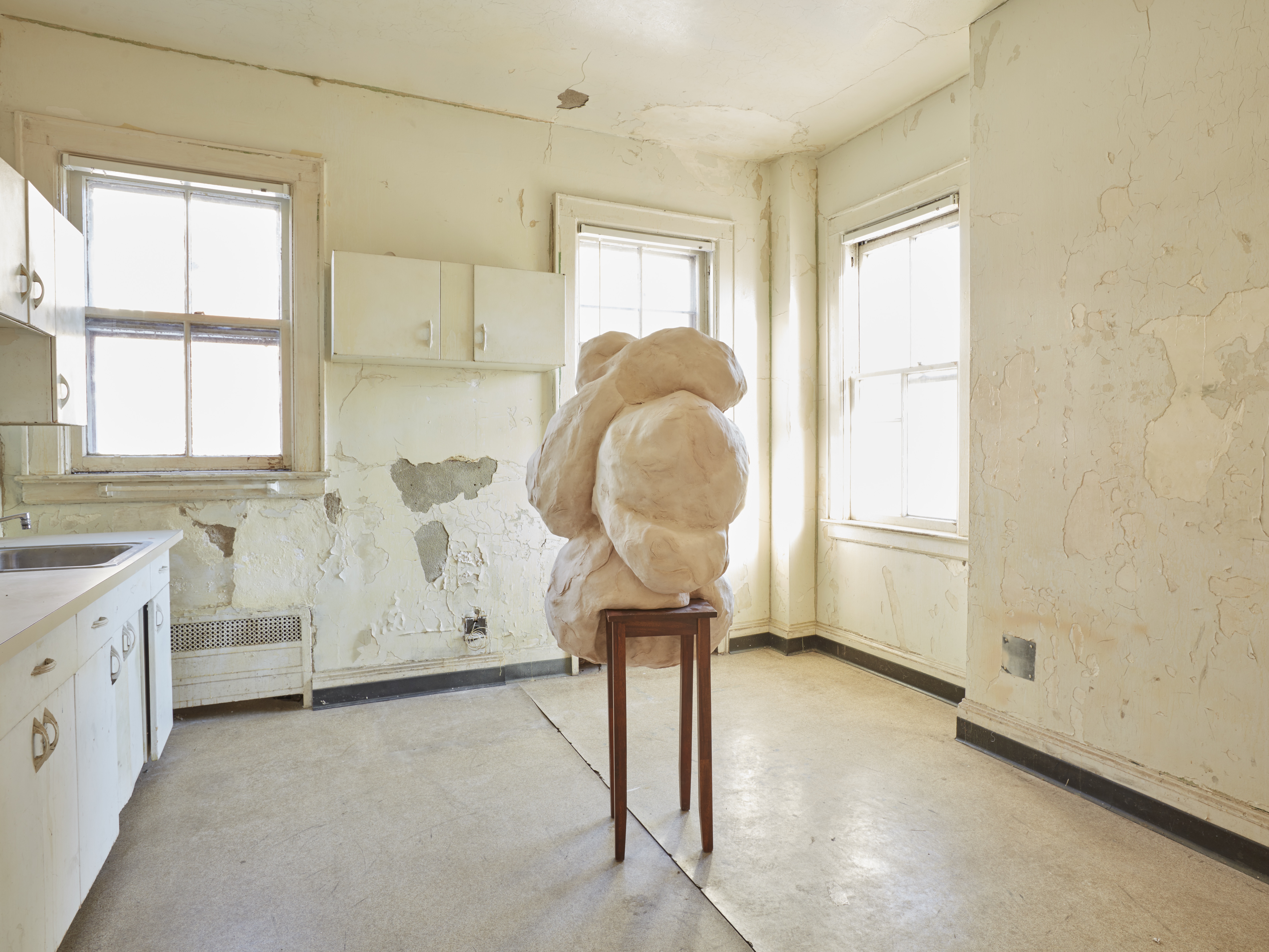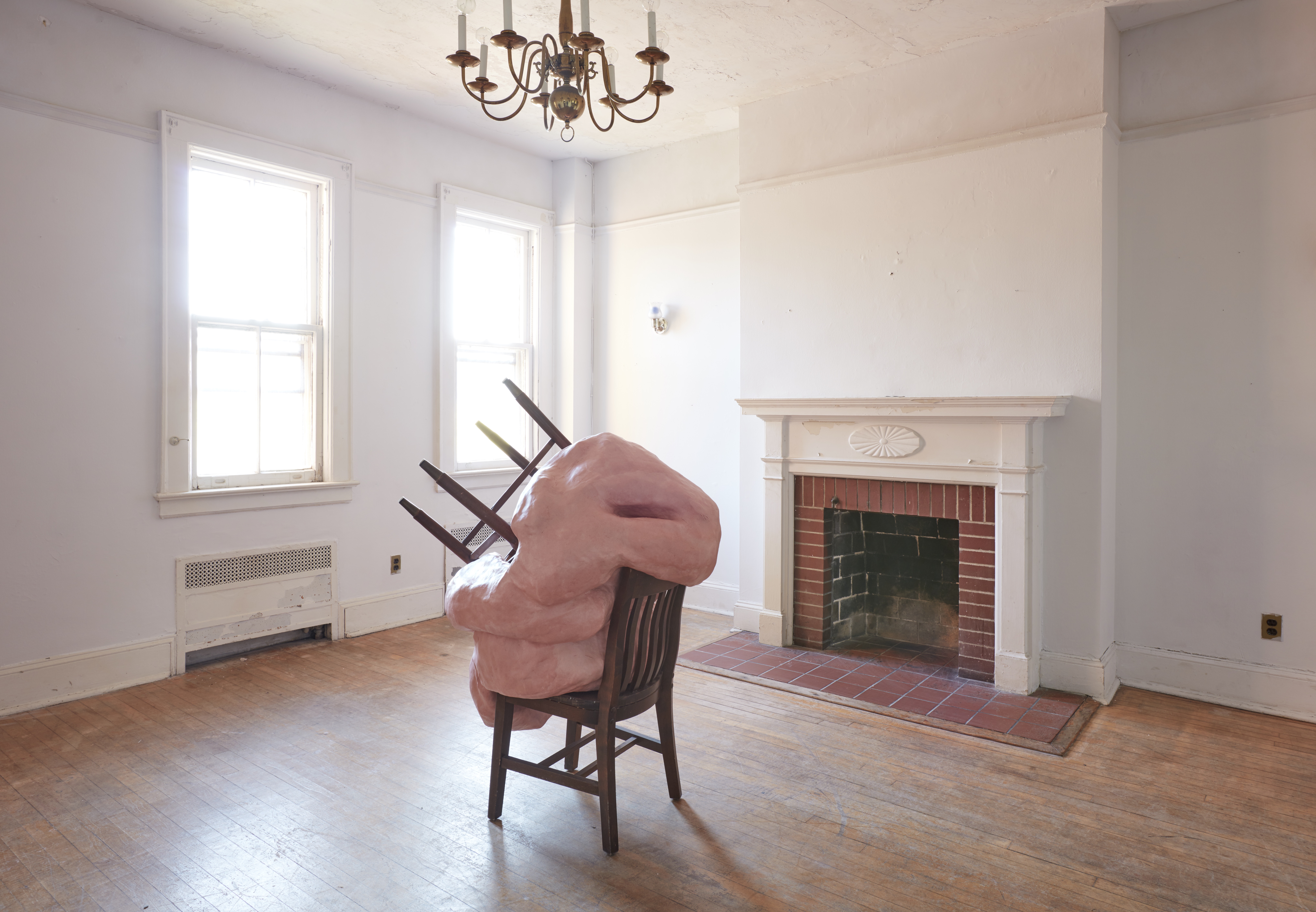2021. Domestic furniture, recycled paper and plastic, plaster gauze, joint compound, flour, toilet paper, glue, latex paint. Photo Jason Wyche