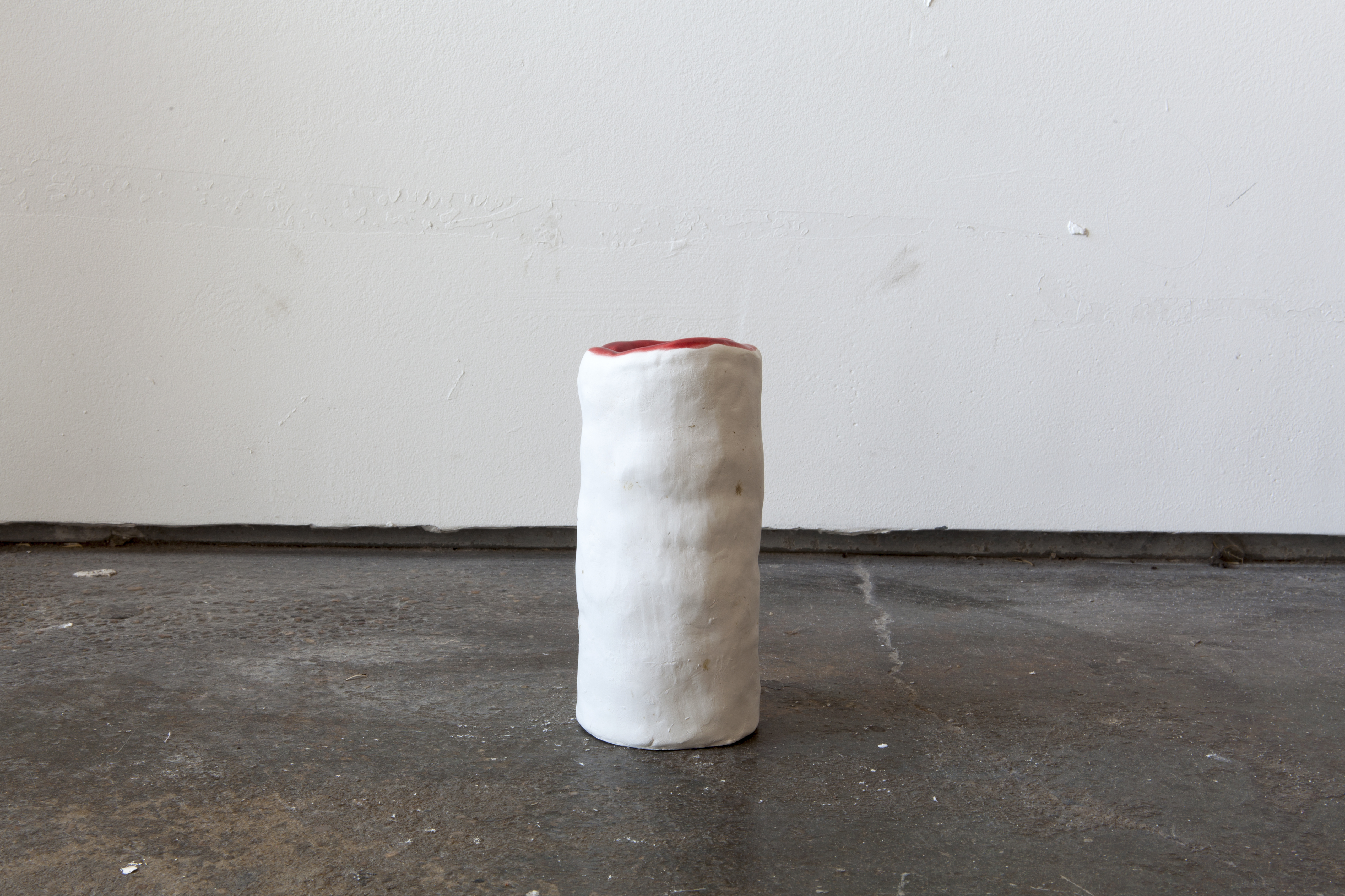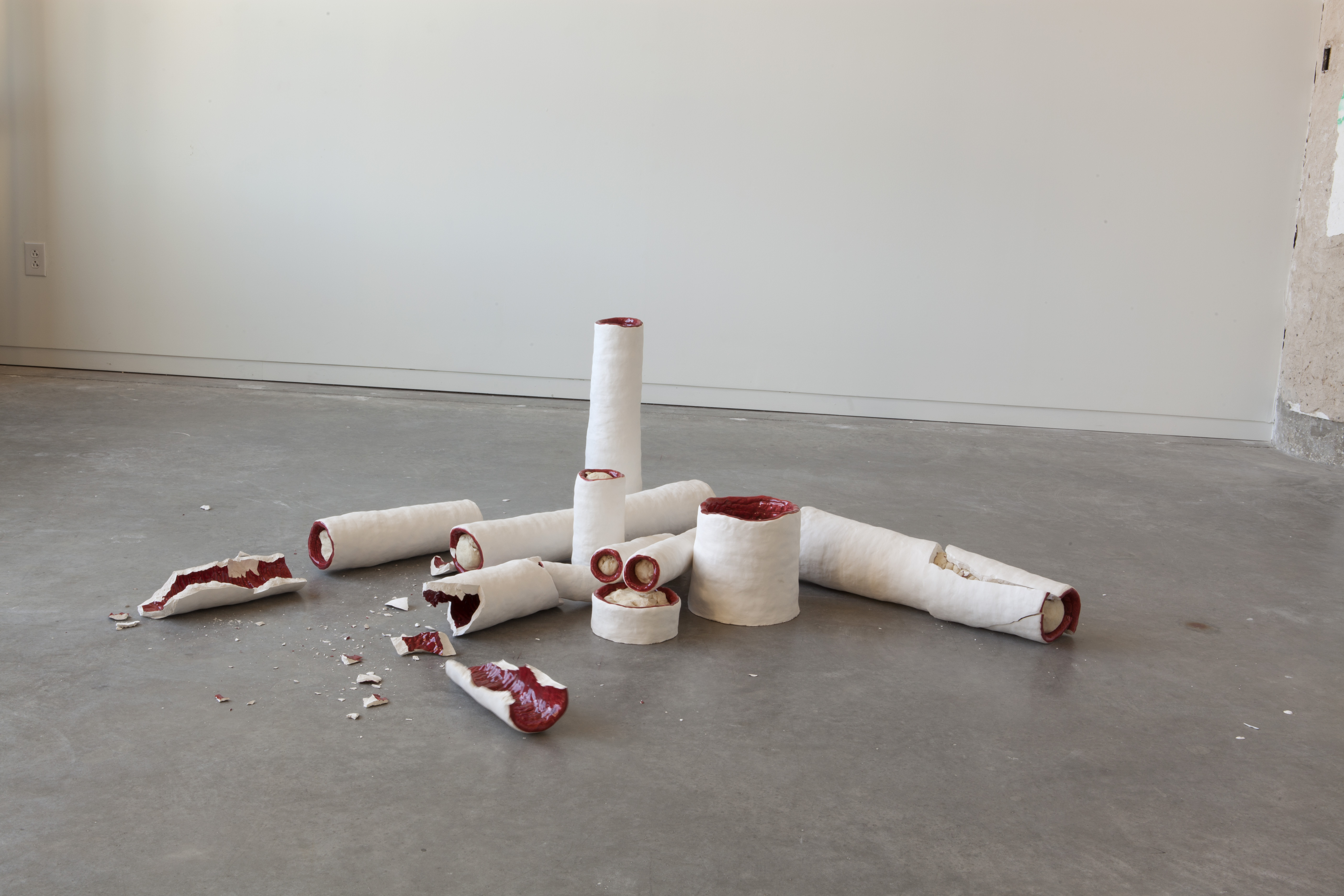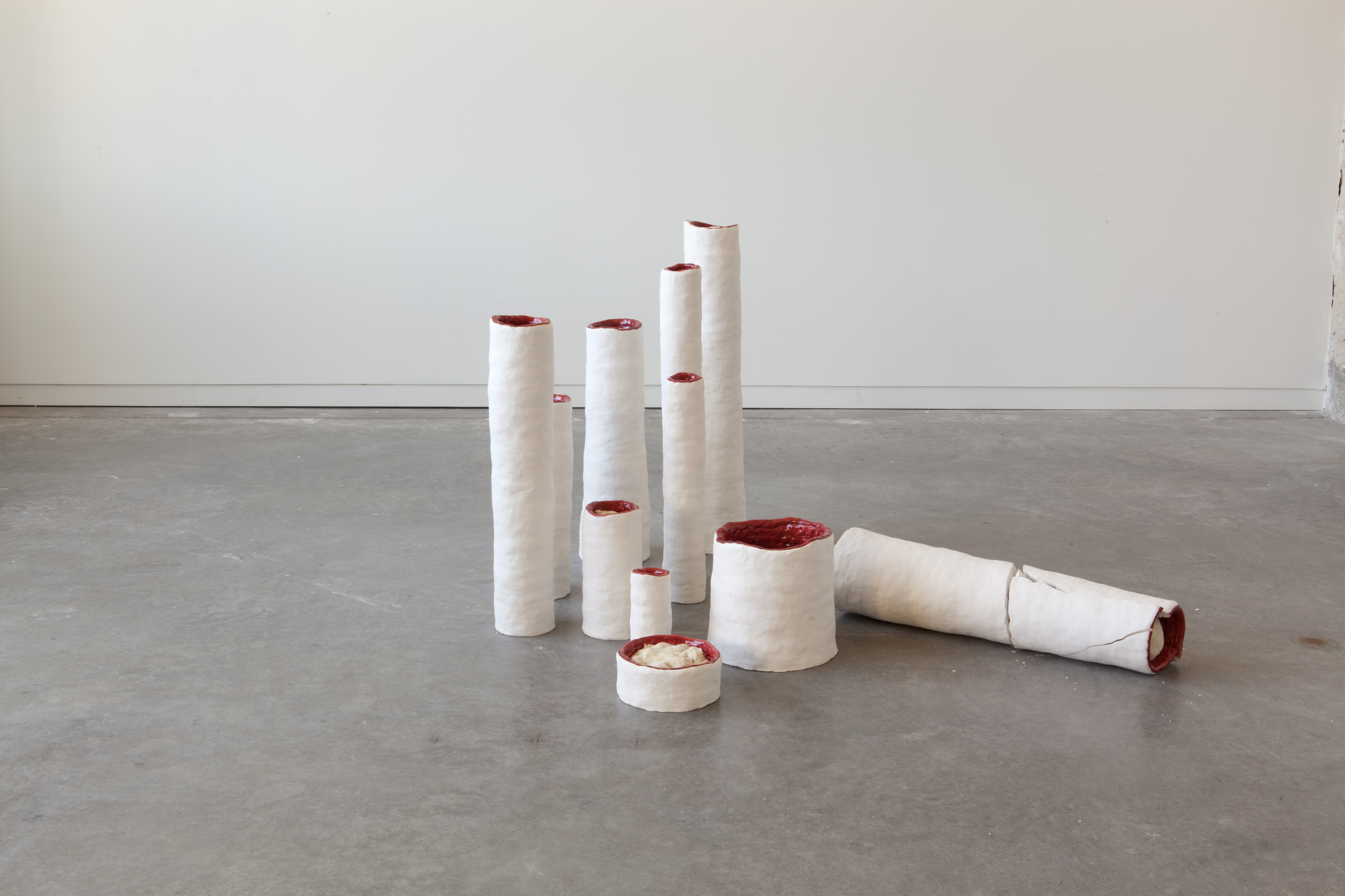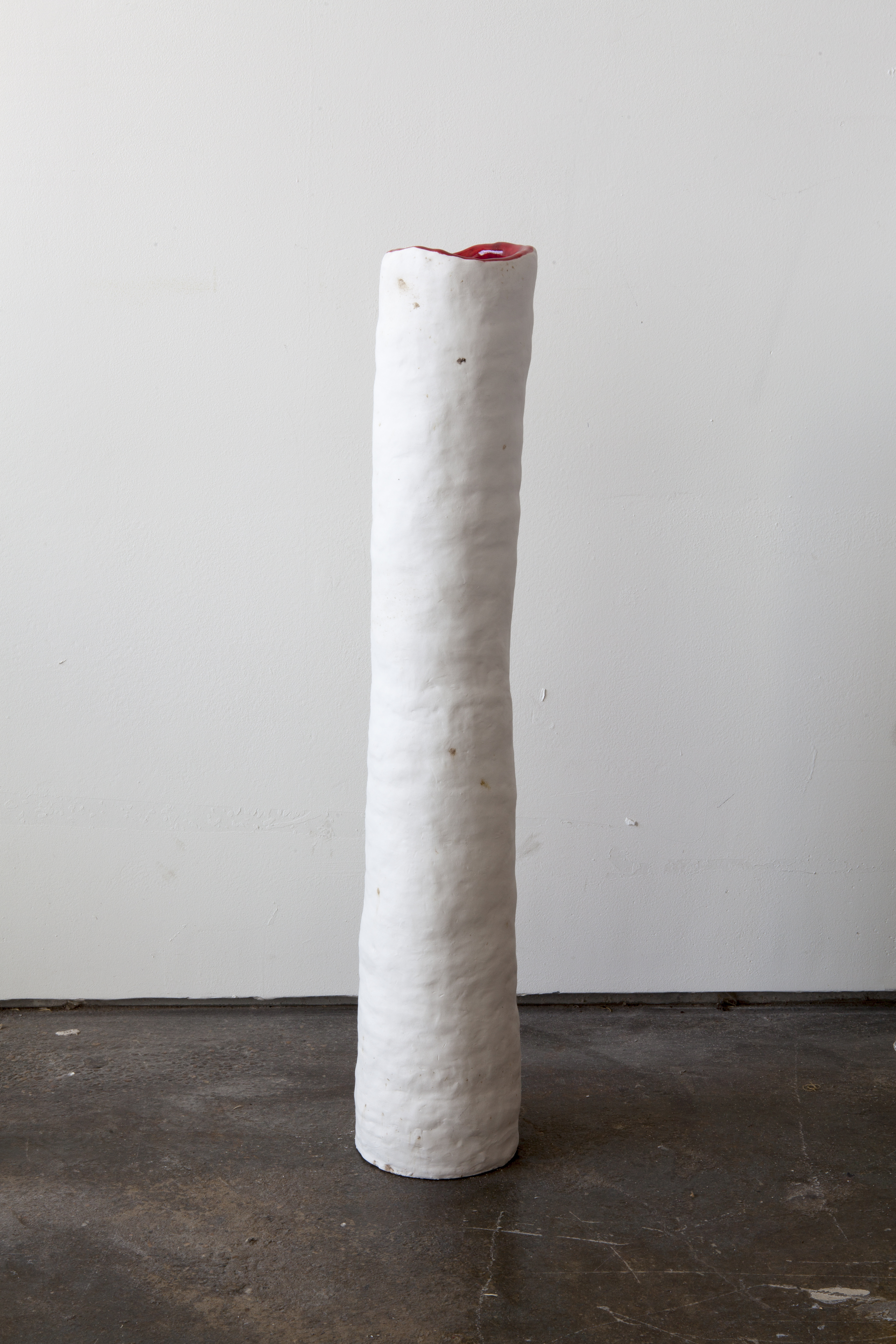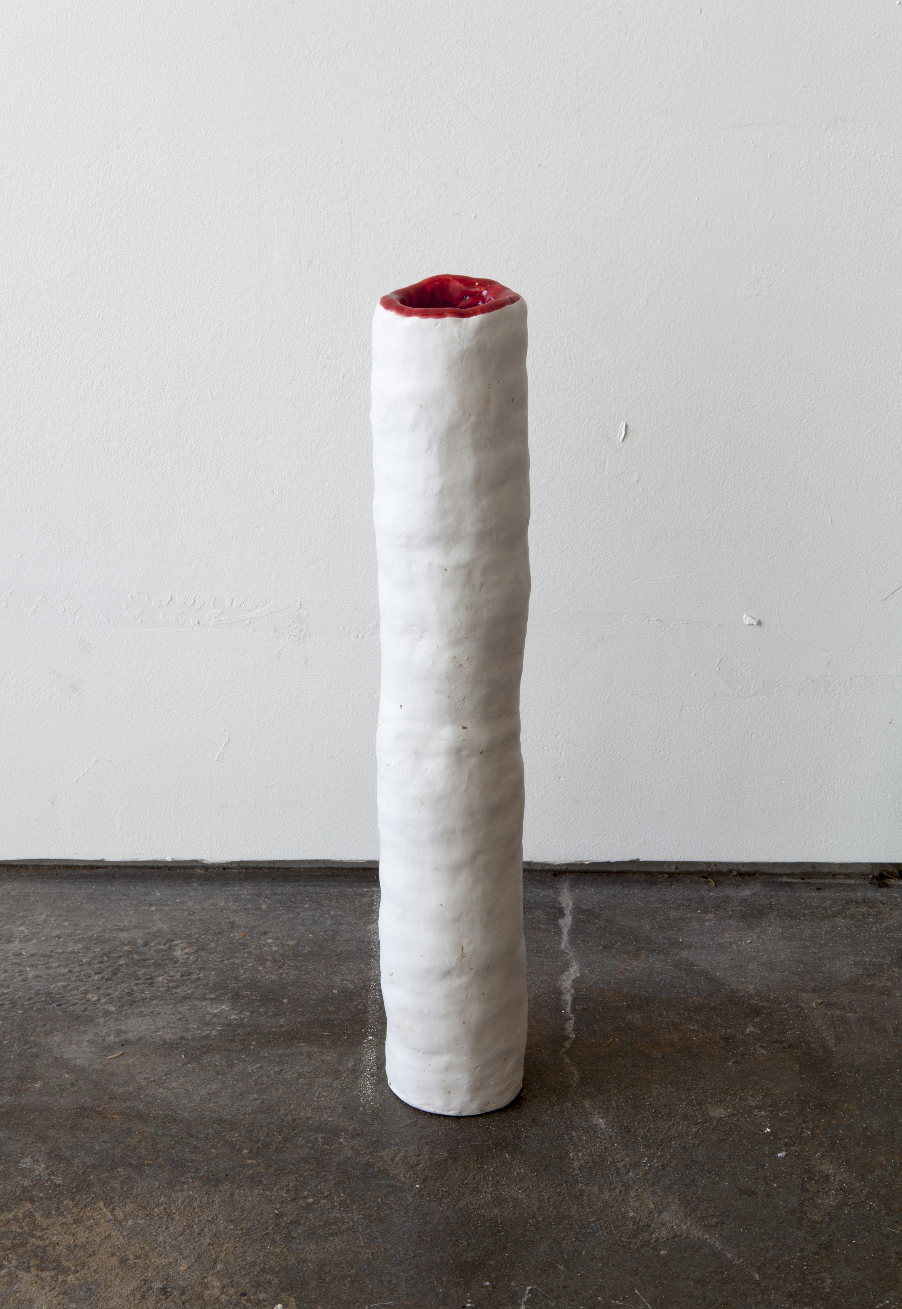 What remains post performance. Sculptures with stains. H 14.5" X Diameter 4.5"