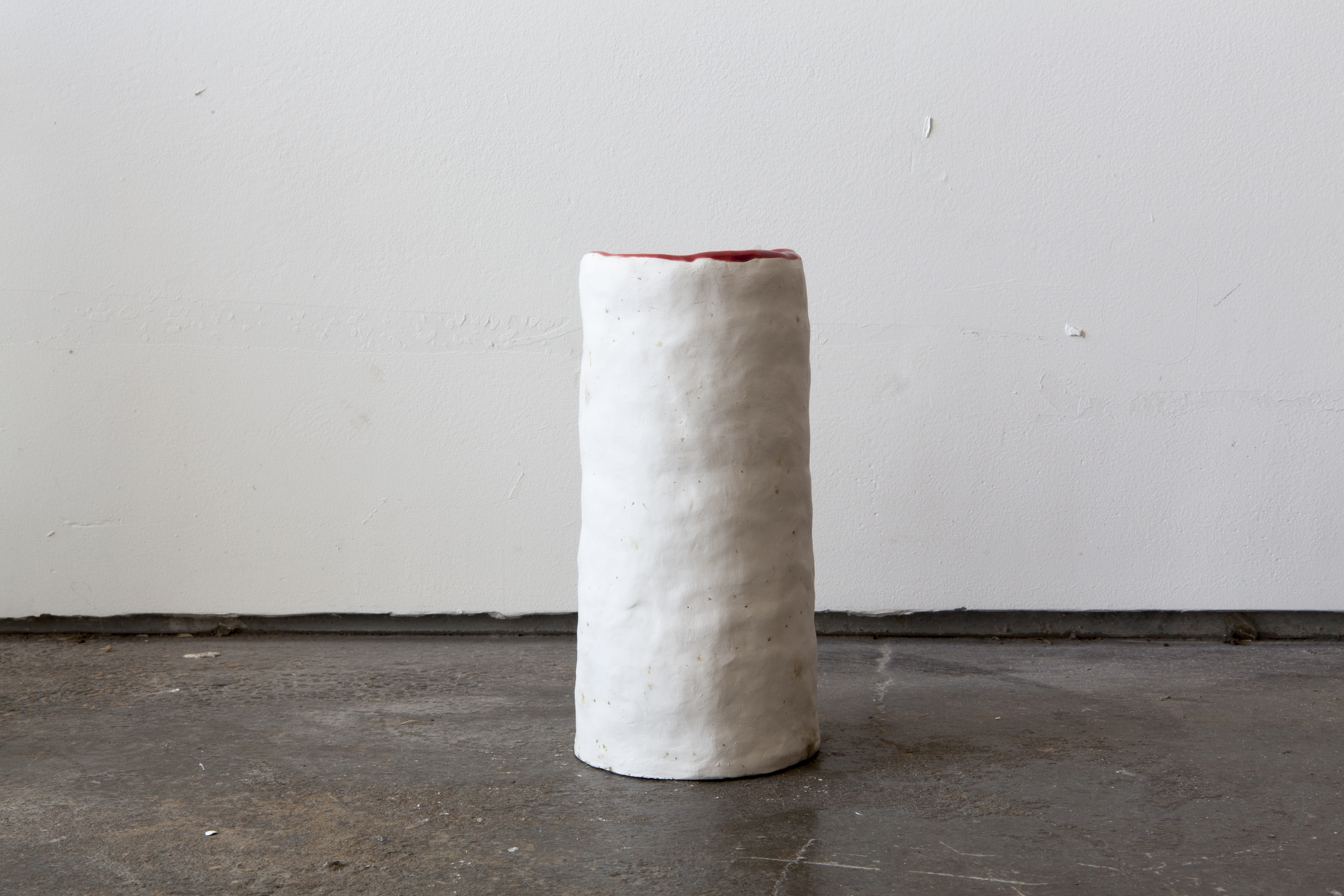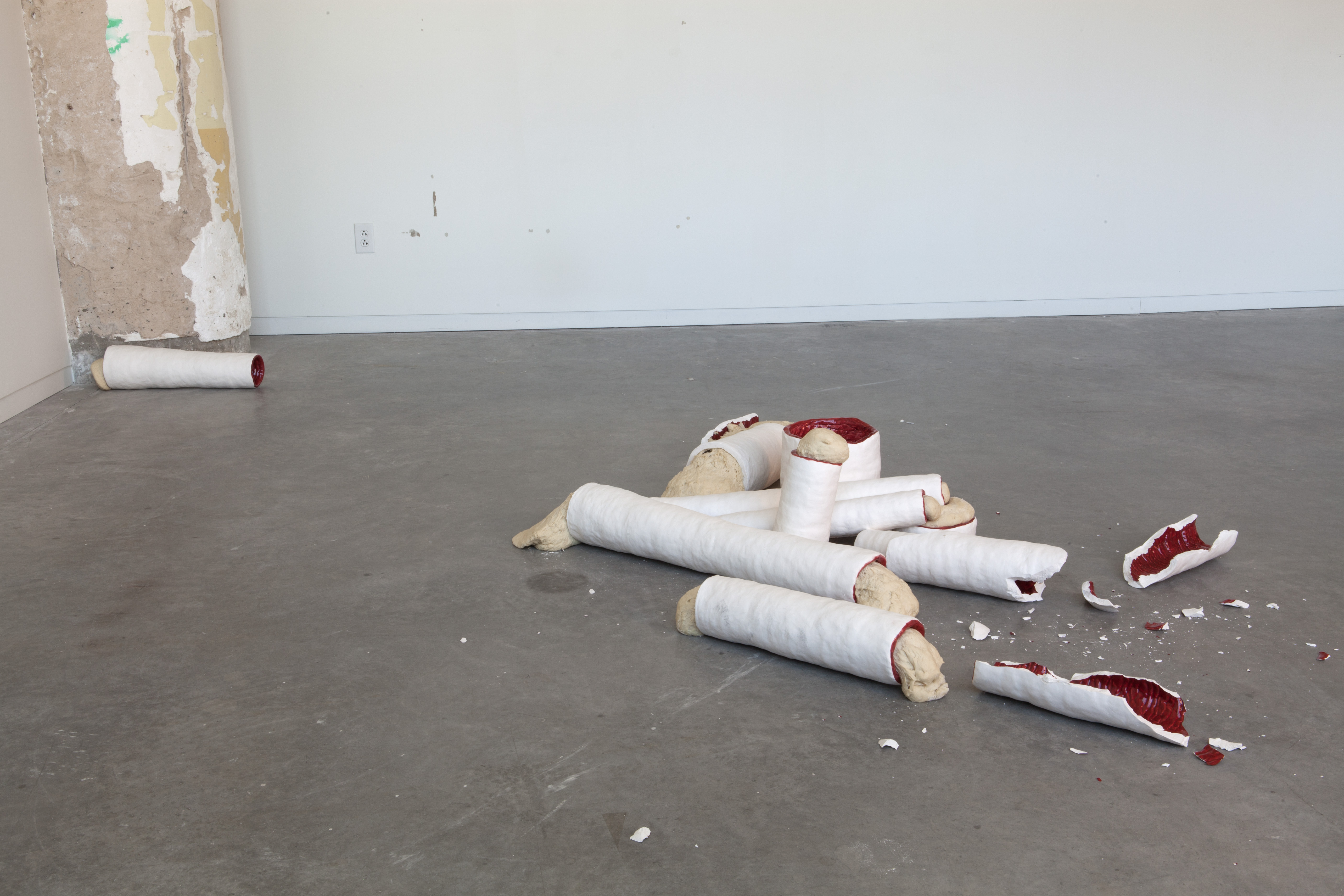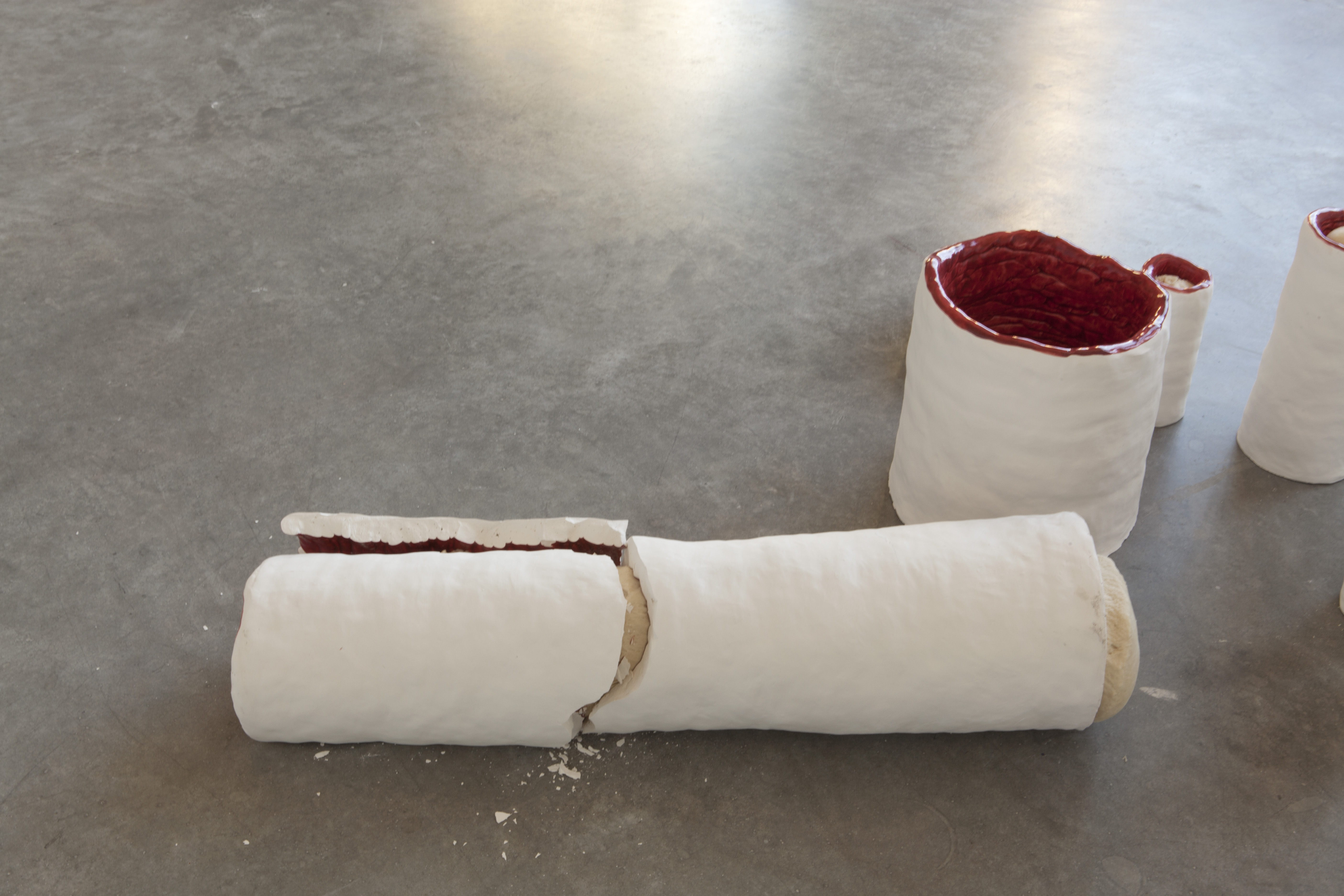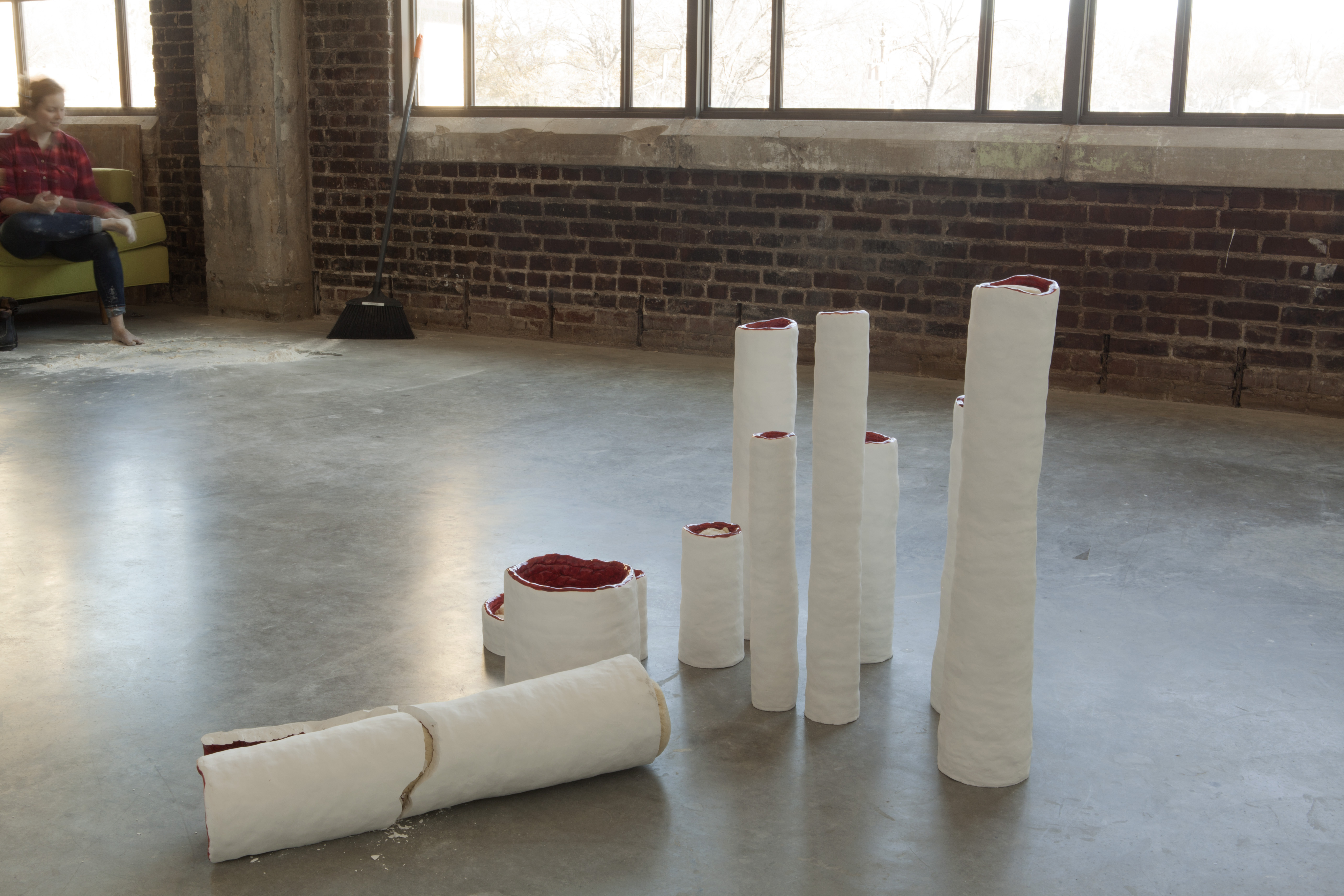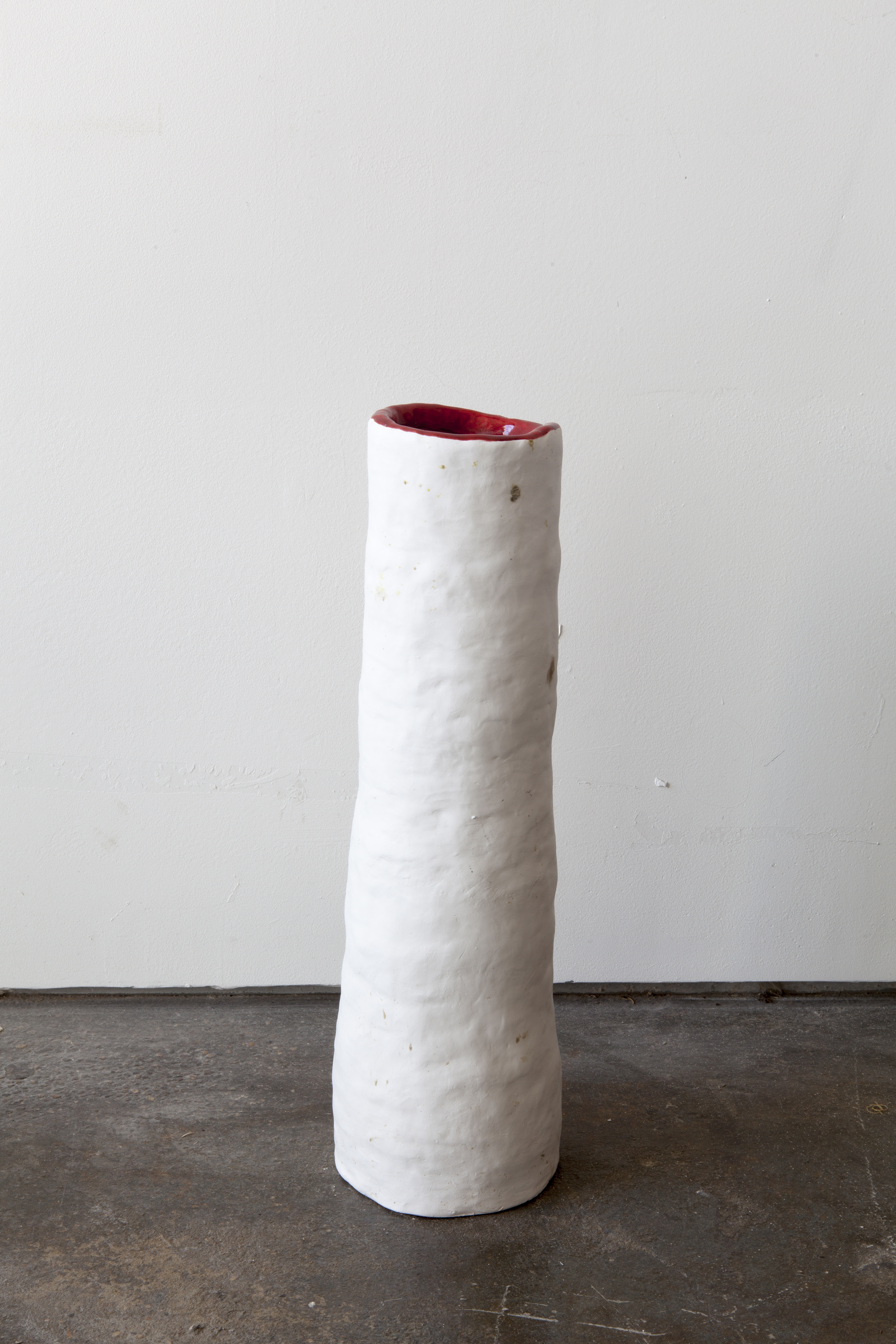 What remains post performance. Sculptures with stains. H 14.5" X Diameter 4.5"