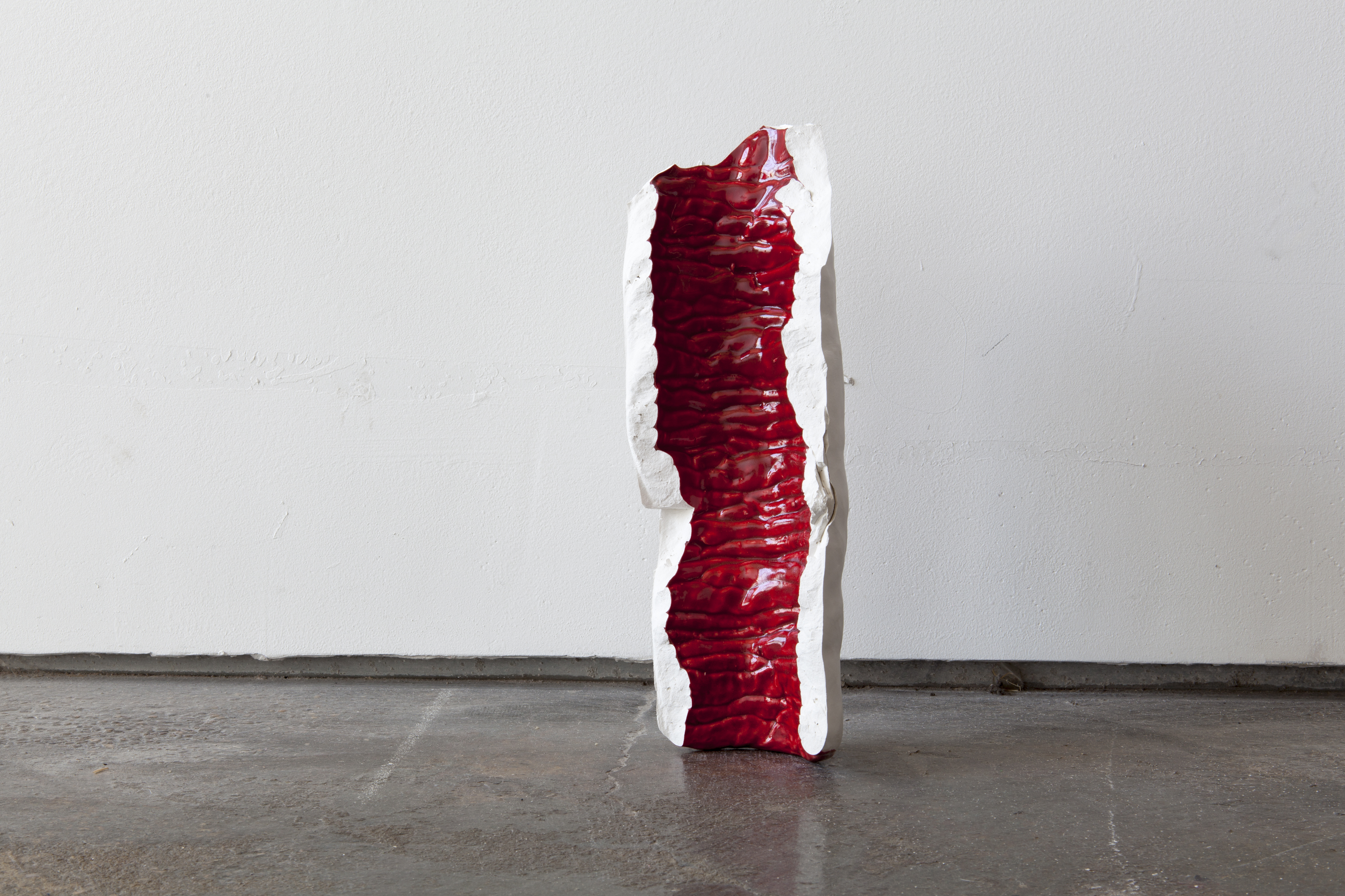 What remains post performance. Sculptures with stains. H 9.5" x 4.5"