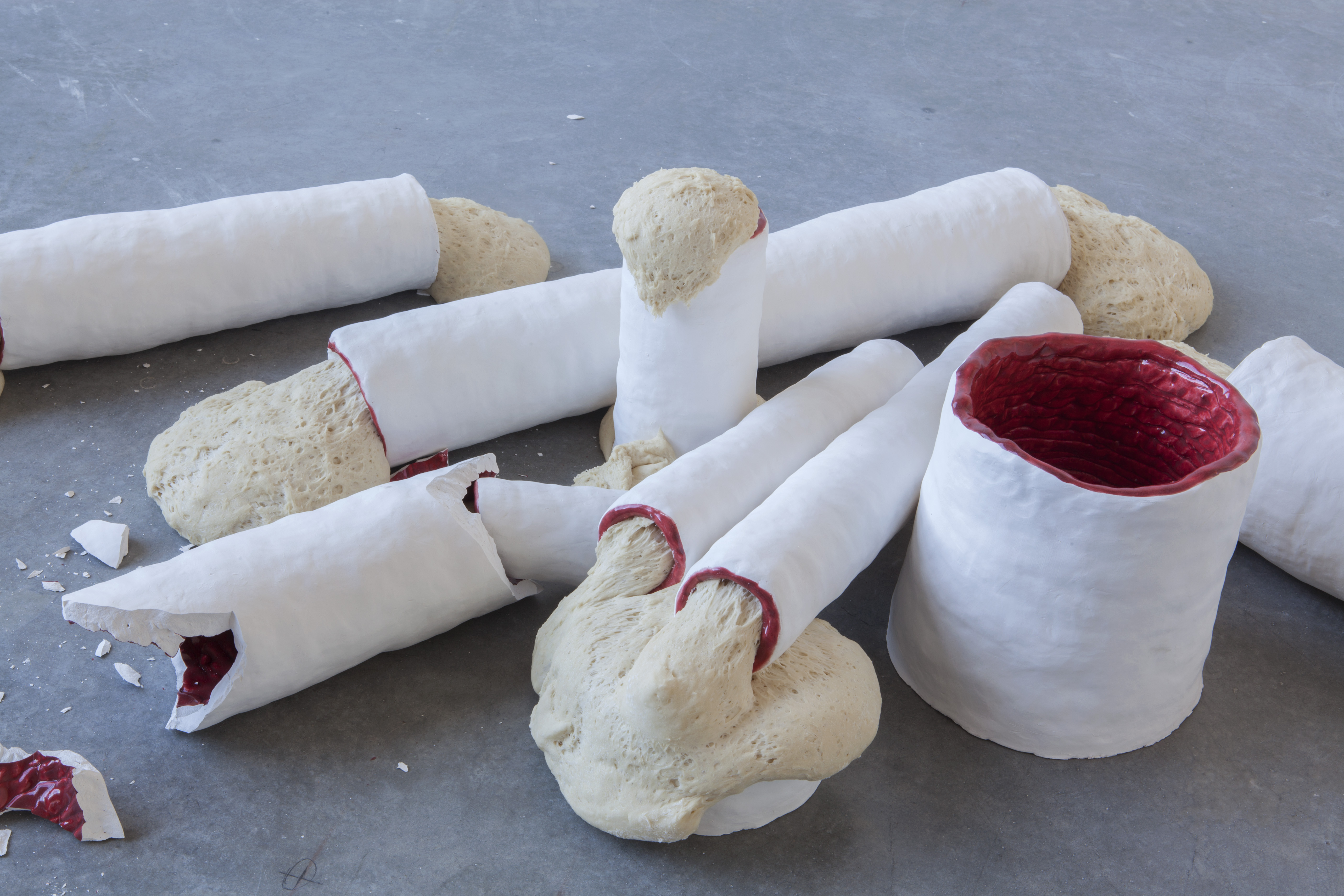 Ceramic vessels created with the intention of activating with bread dough. These vessels ‘self destructed’ in a private performance for the camera at the artists studio. The last images show the remains or relics post performance that carry the scars from the volatile performance act. The work was activated in the artists studio during her time as AIR at Crosstown Arts in December of 2018.