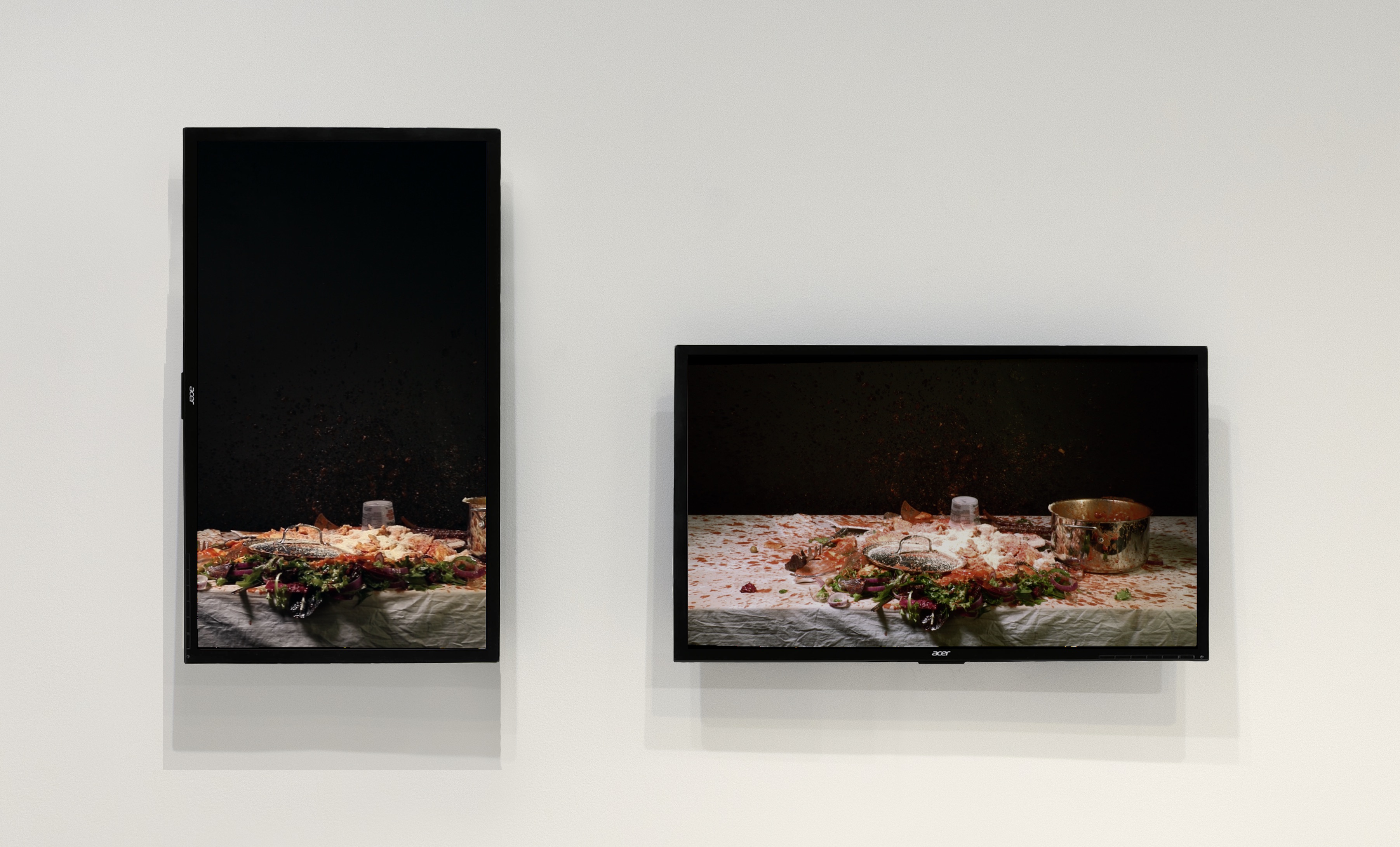 Midnight Dinner, 2016. Two Channel Video. Duration 02:26. Installation View