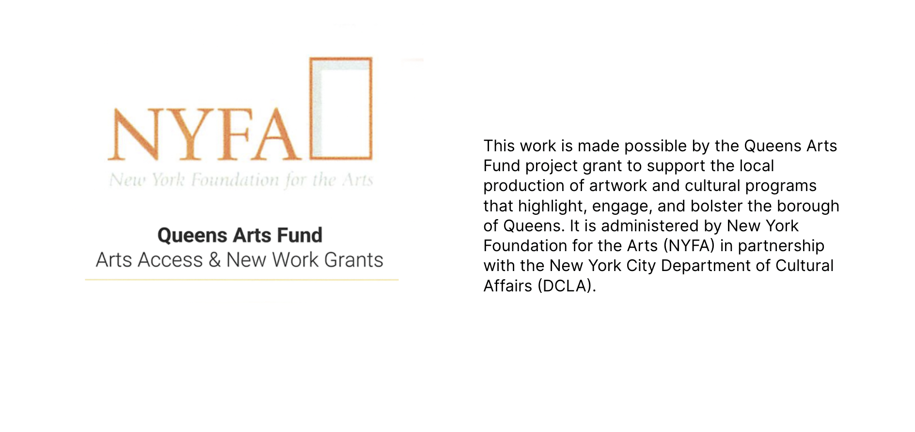 This work was awarded a 2023 New Work Grant, by the Queens Arts Fund, NY, USA.