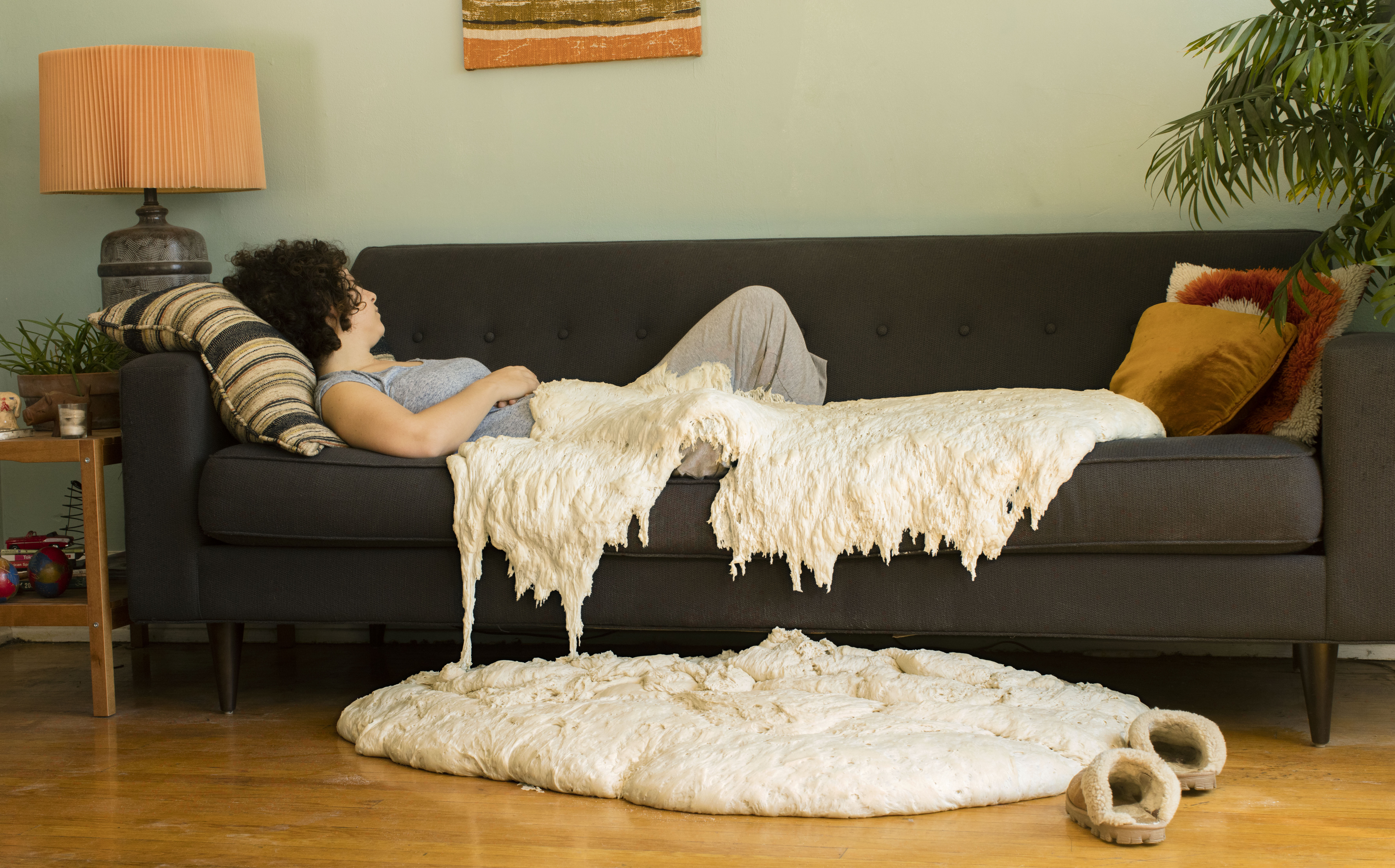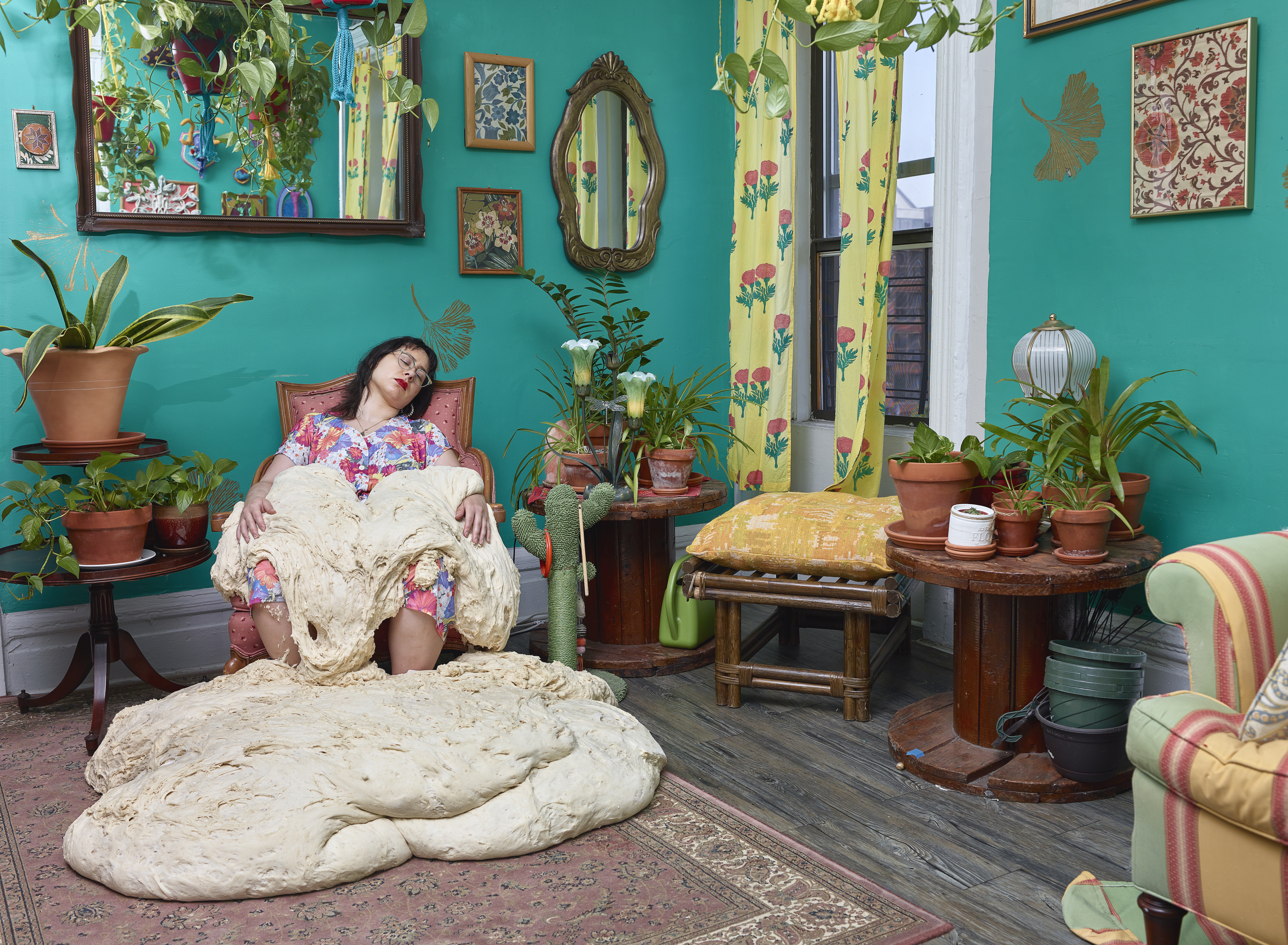 "Portraits of Women With Their Weight In Dough" is an ongoing photographic and video series by Santina Amato that invites women from diverse backgrounds to labor in the creation of, and pose with, their body weight in dough over a two-hour session. The participants, selected through an open call process, share their personal reasons for wanting their portrait taken with this symbolic material.
