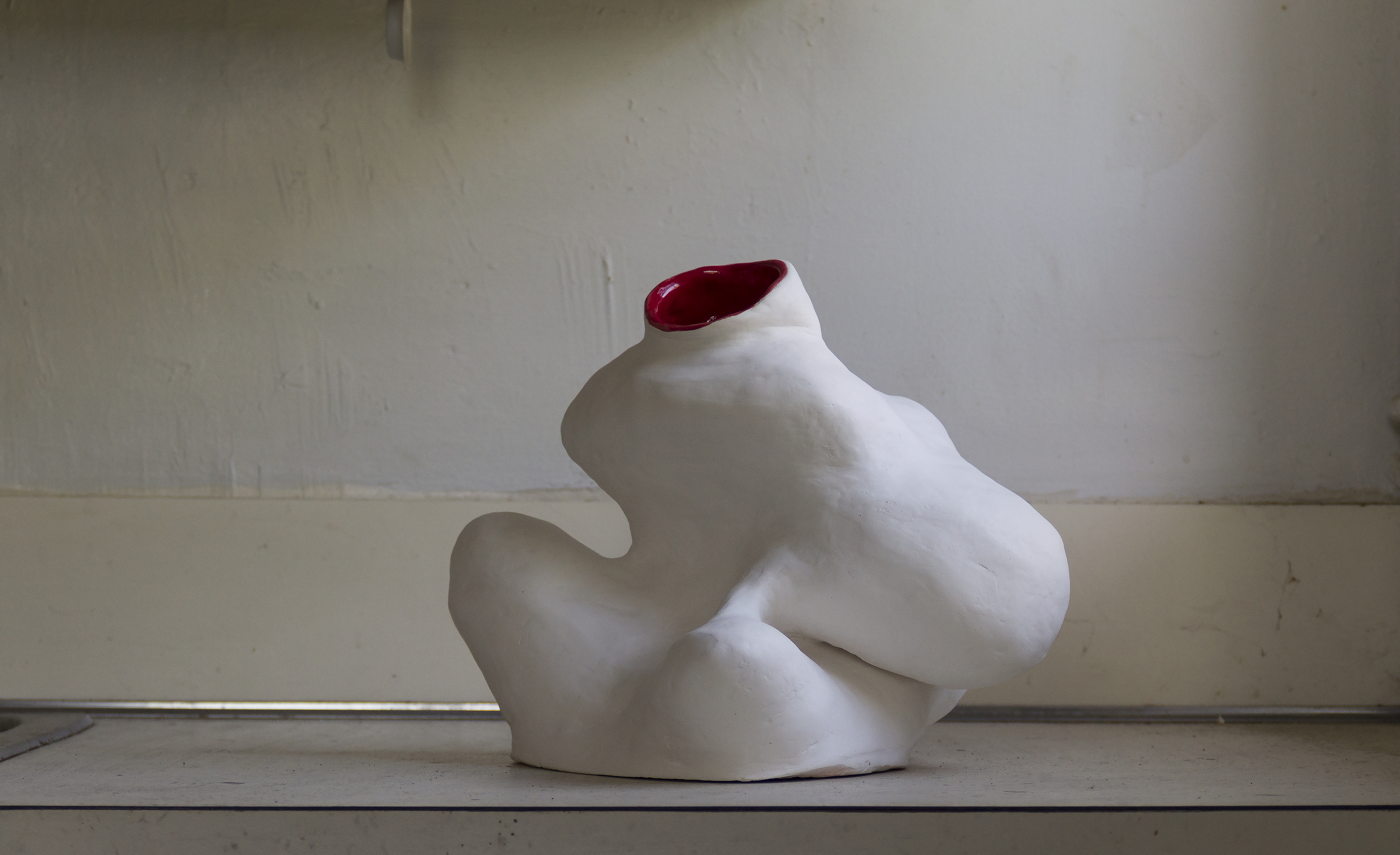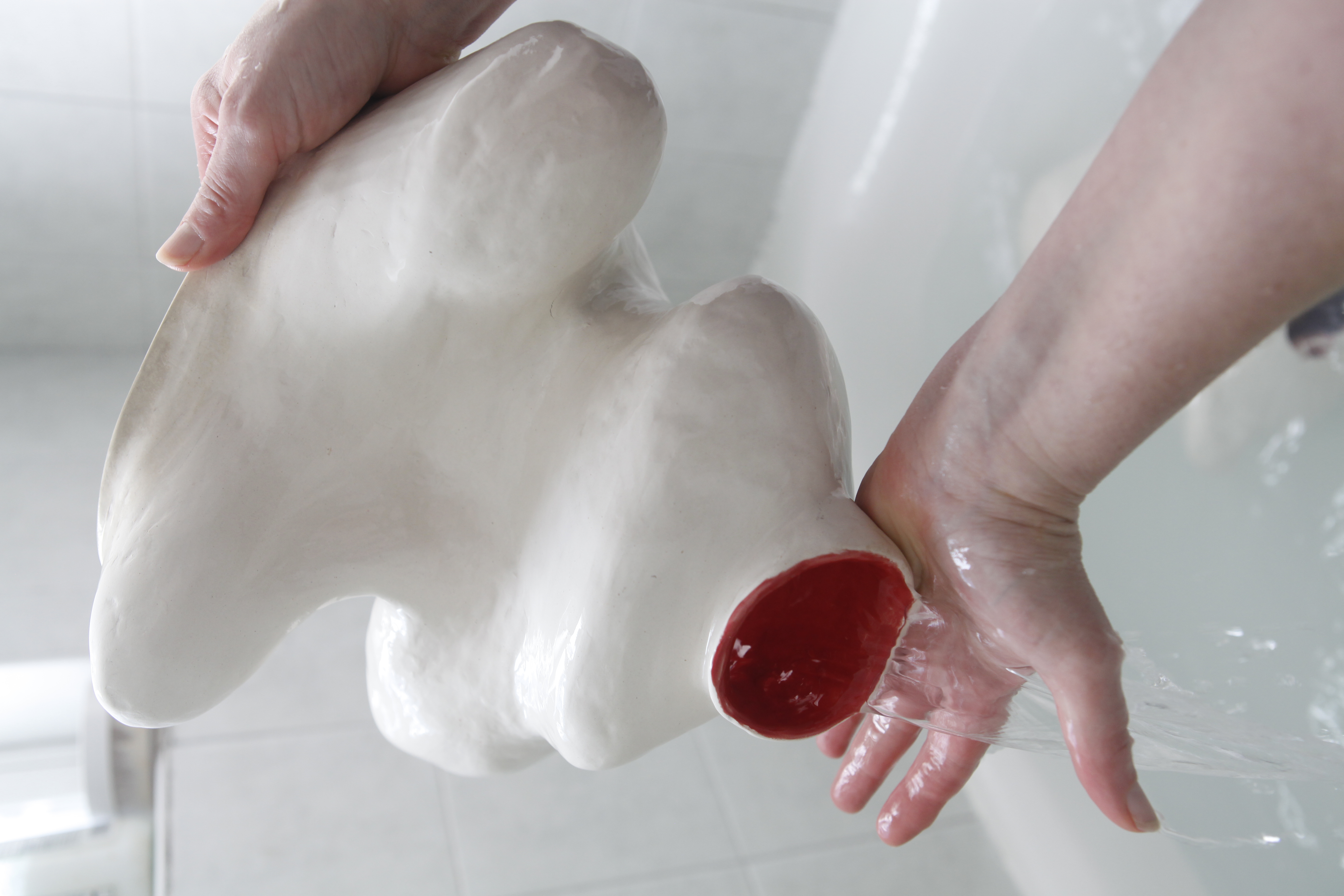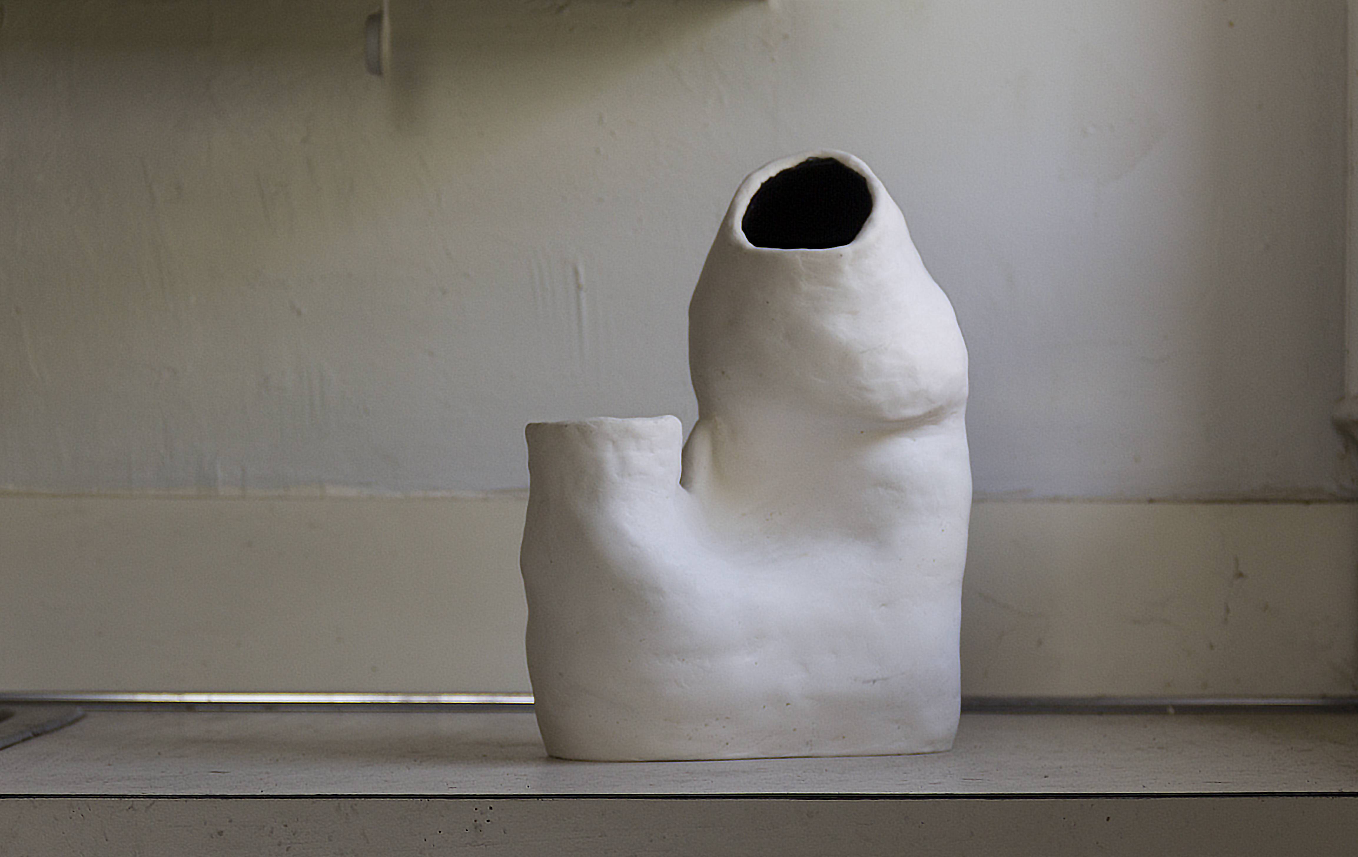 This series of sculptures are specifically created from a domestic material (ceramics) in a size that considers its relation to the human body, with the aim to be ‘maintained’ after each dough performance. Overtime, they will carry the scars of their previous performances on their unglazed surfaces.