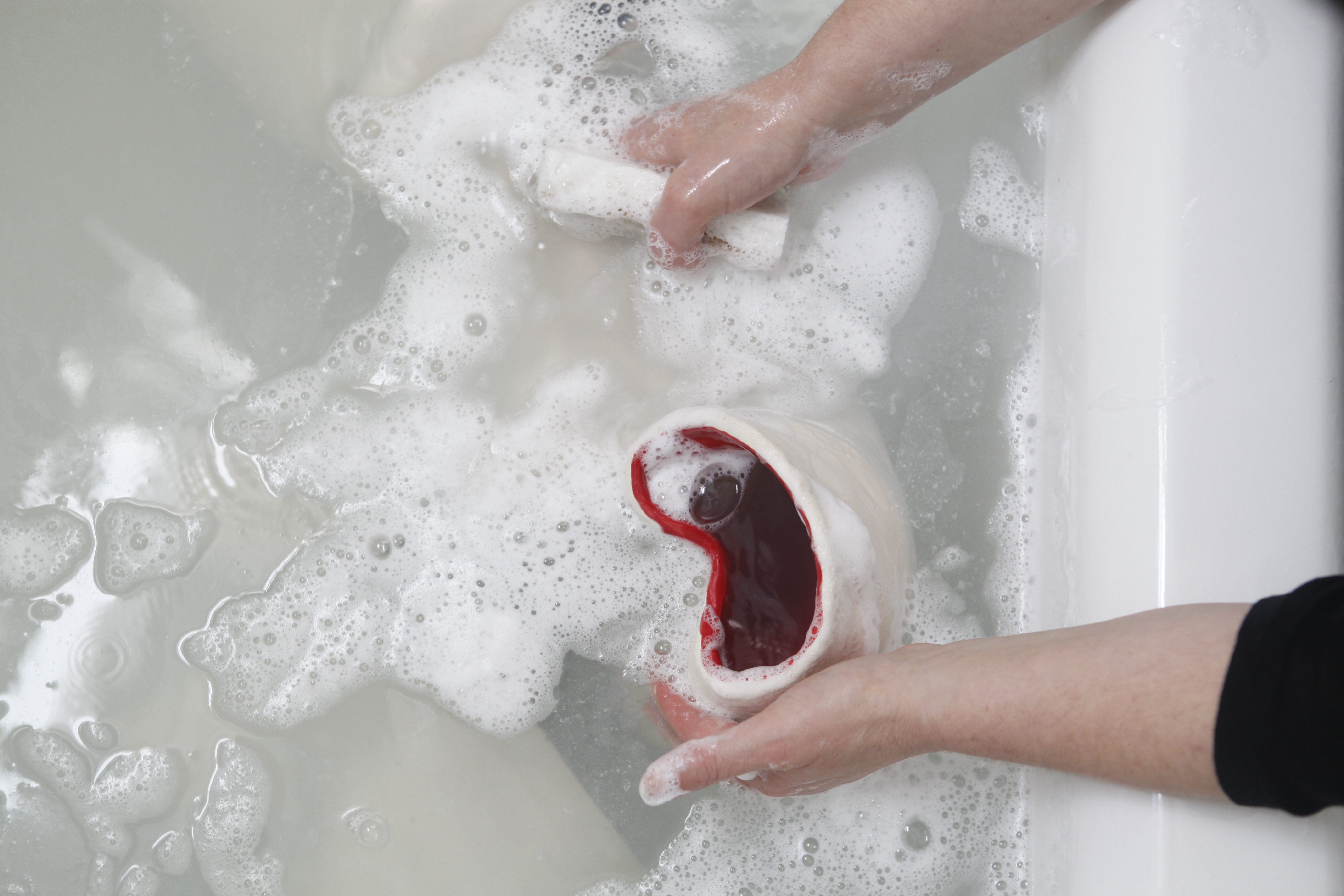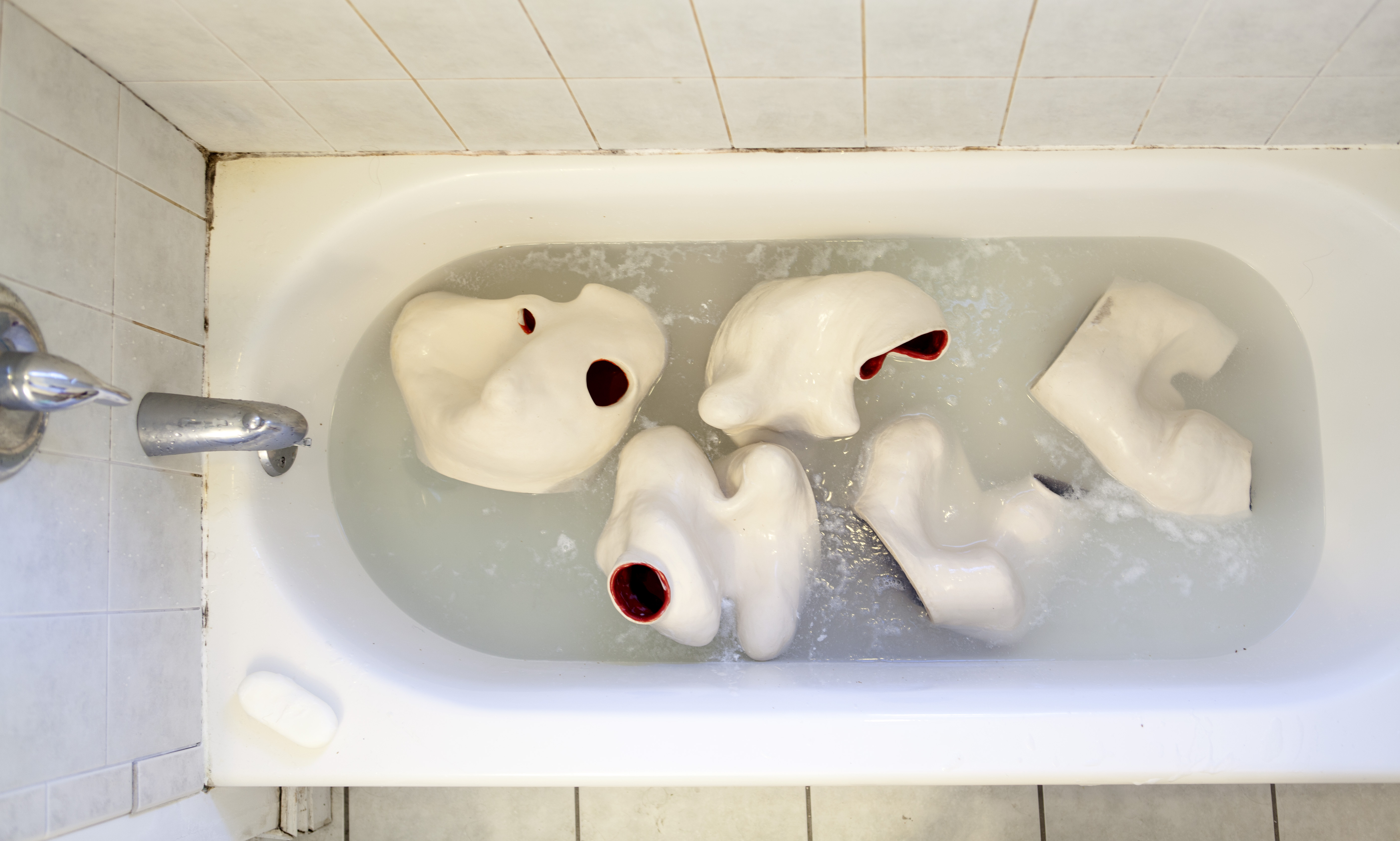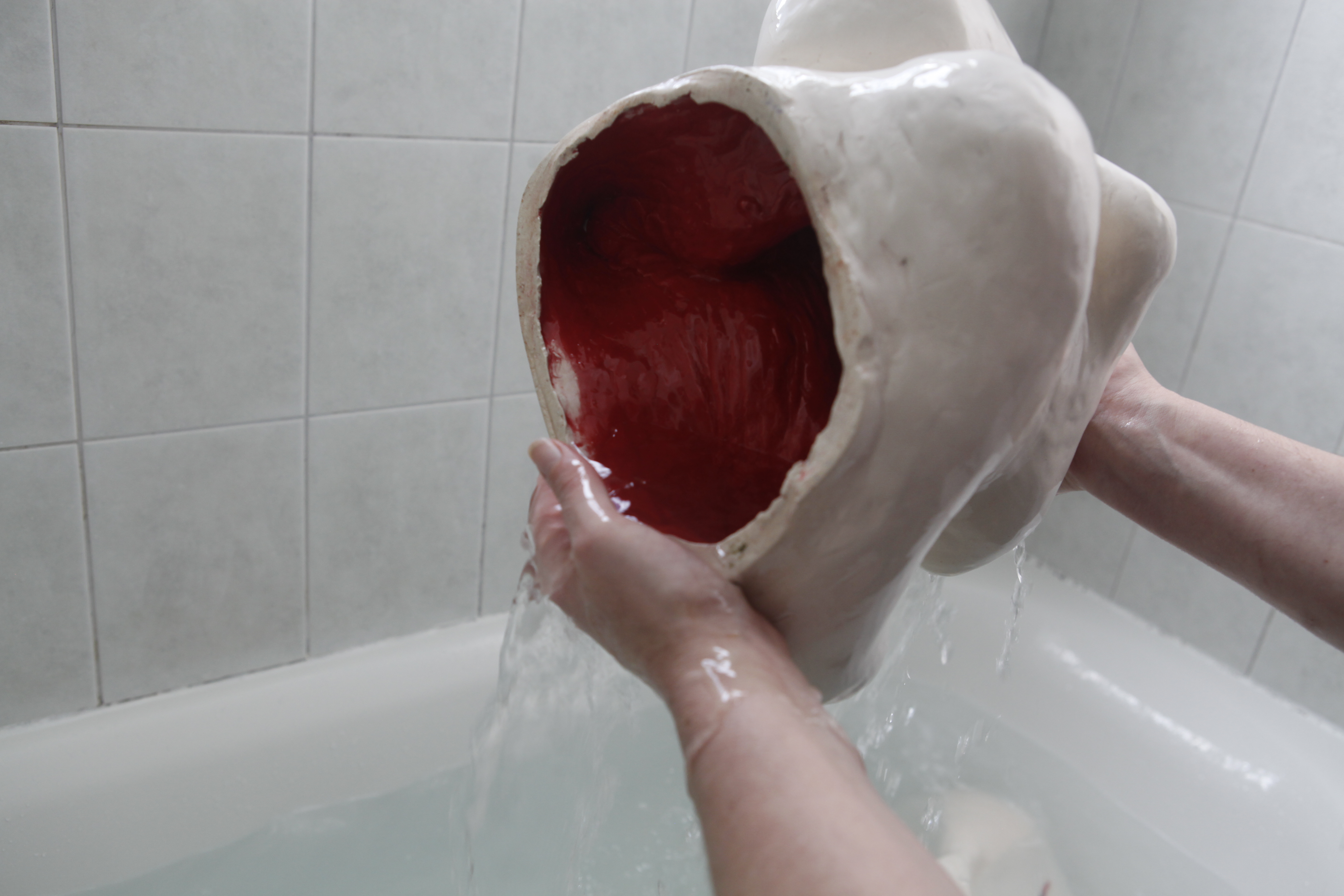 This series of sculptures are specifically created from a domestic material (ceramics) in a size that considers its relation to the human body, with the aim to be ‘maintained’ after each dough performance. Overtime, they will carry the scars of their previous performances on their unglazed surfaces.