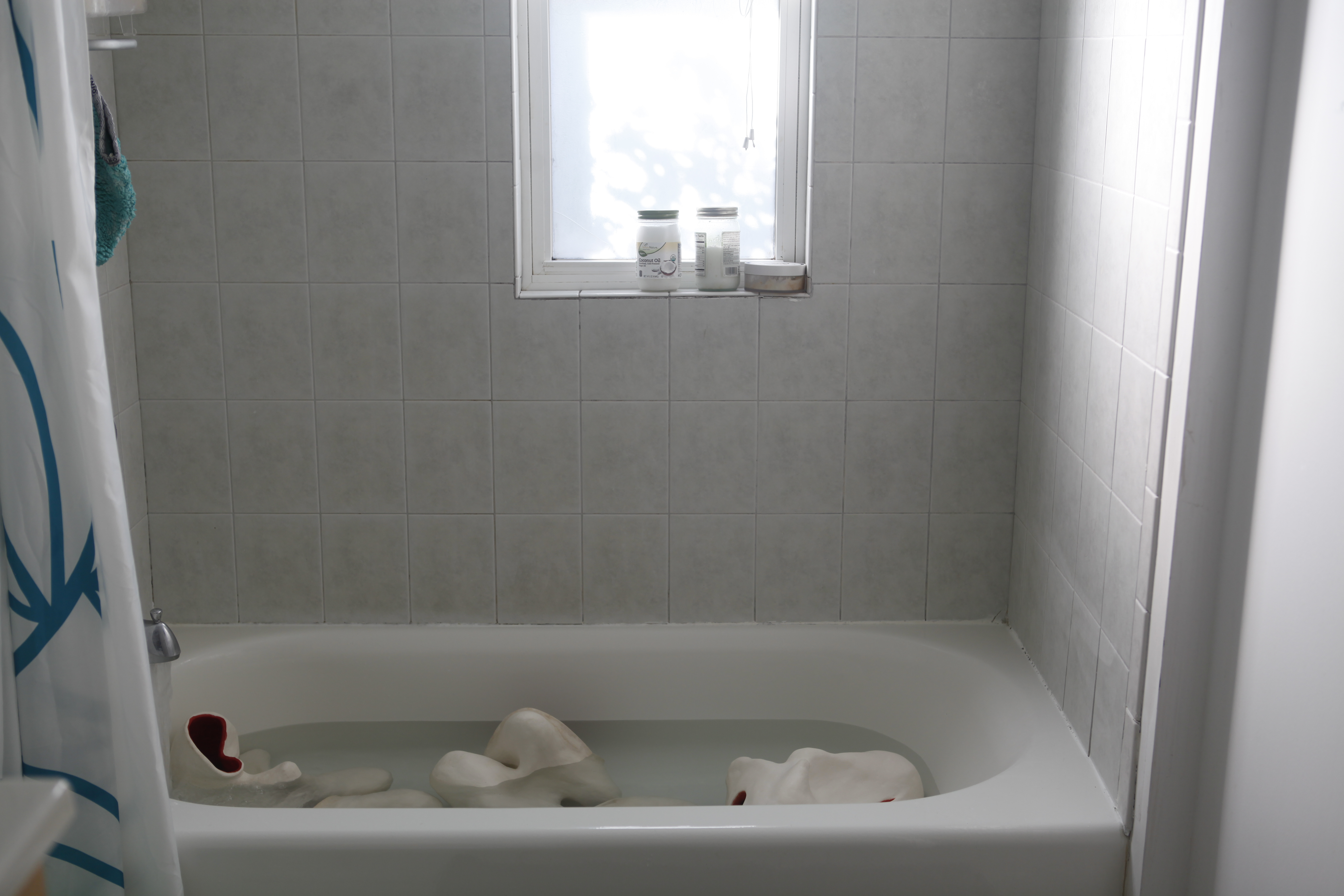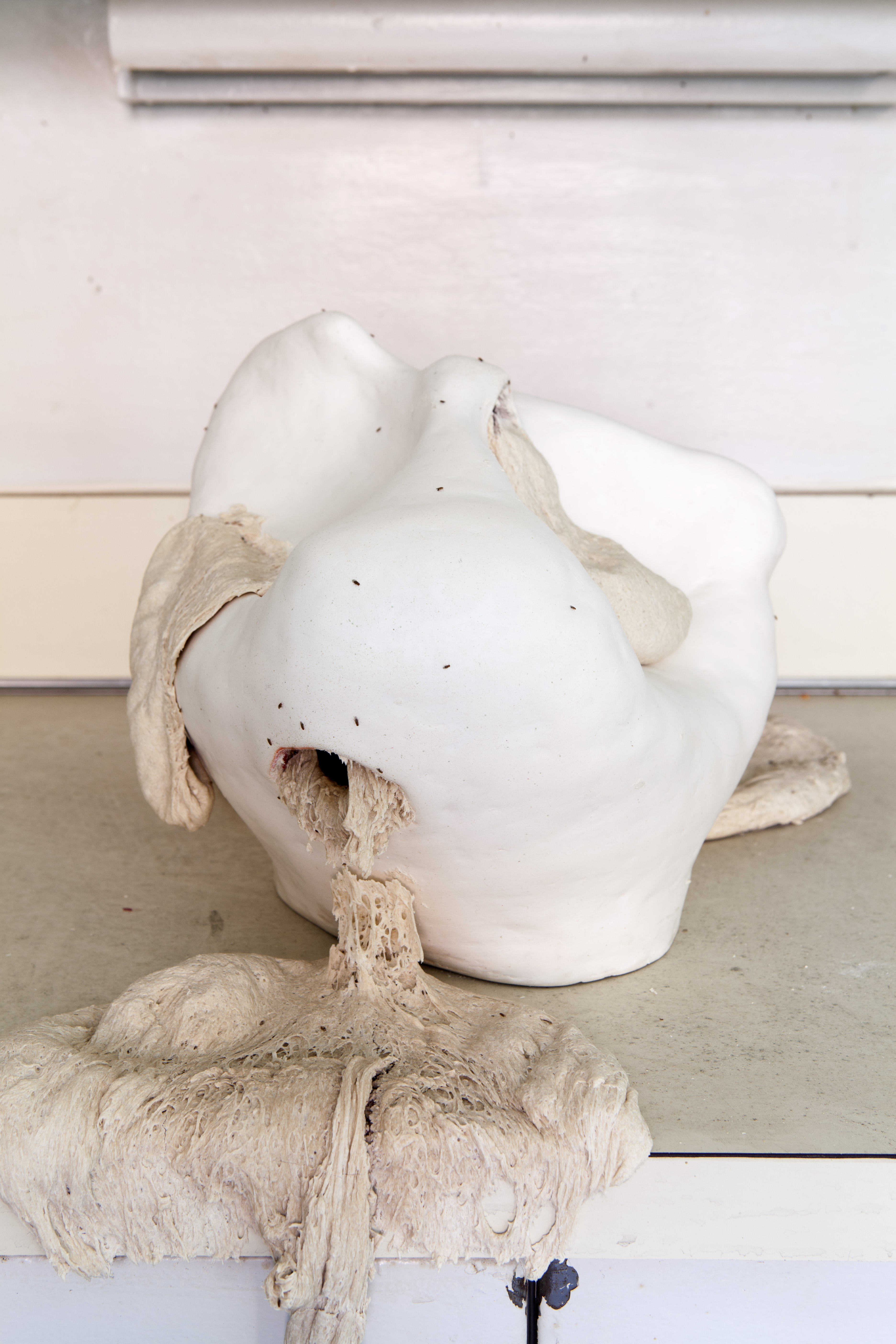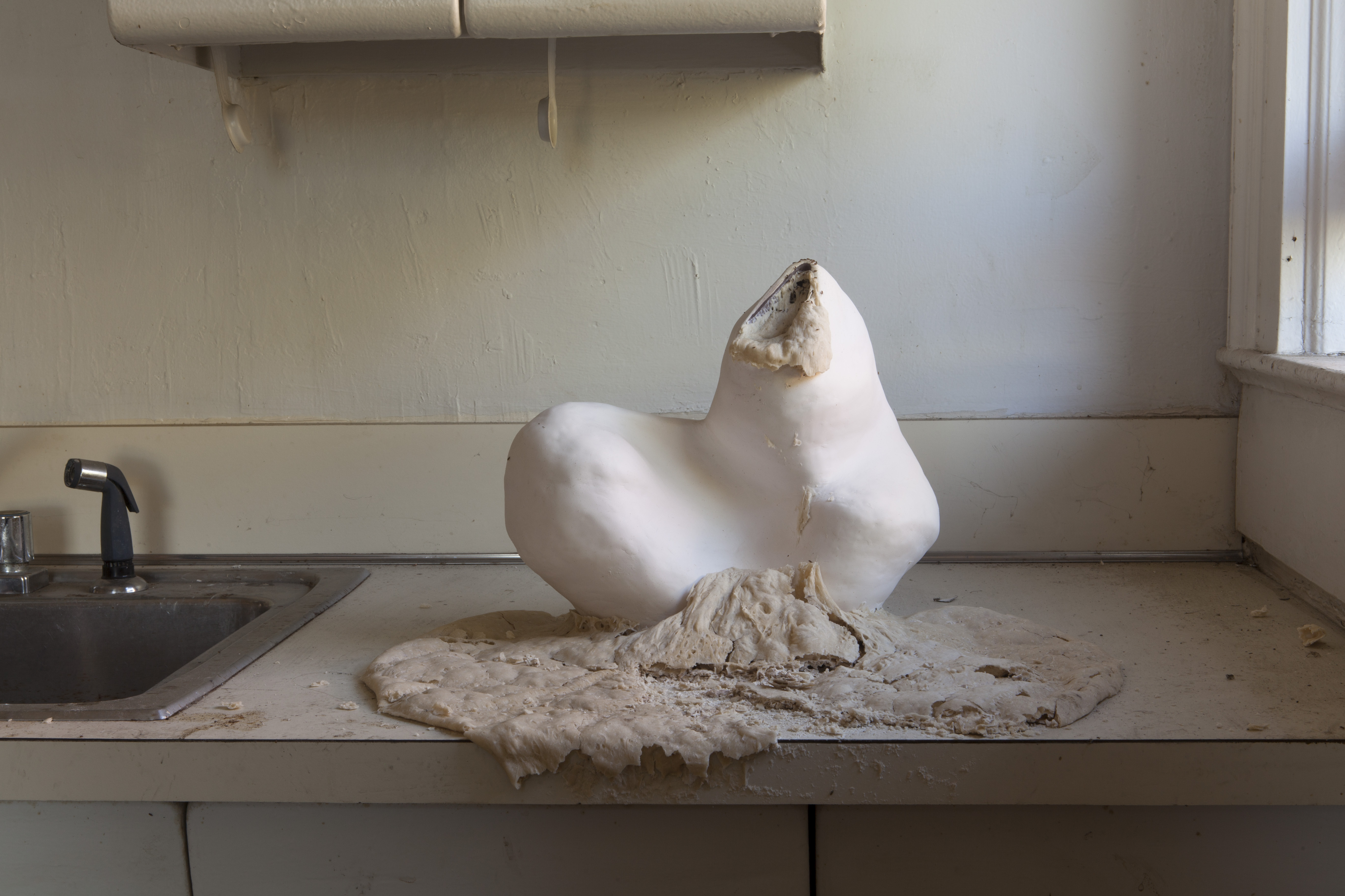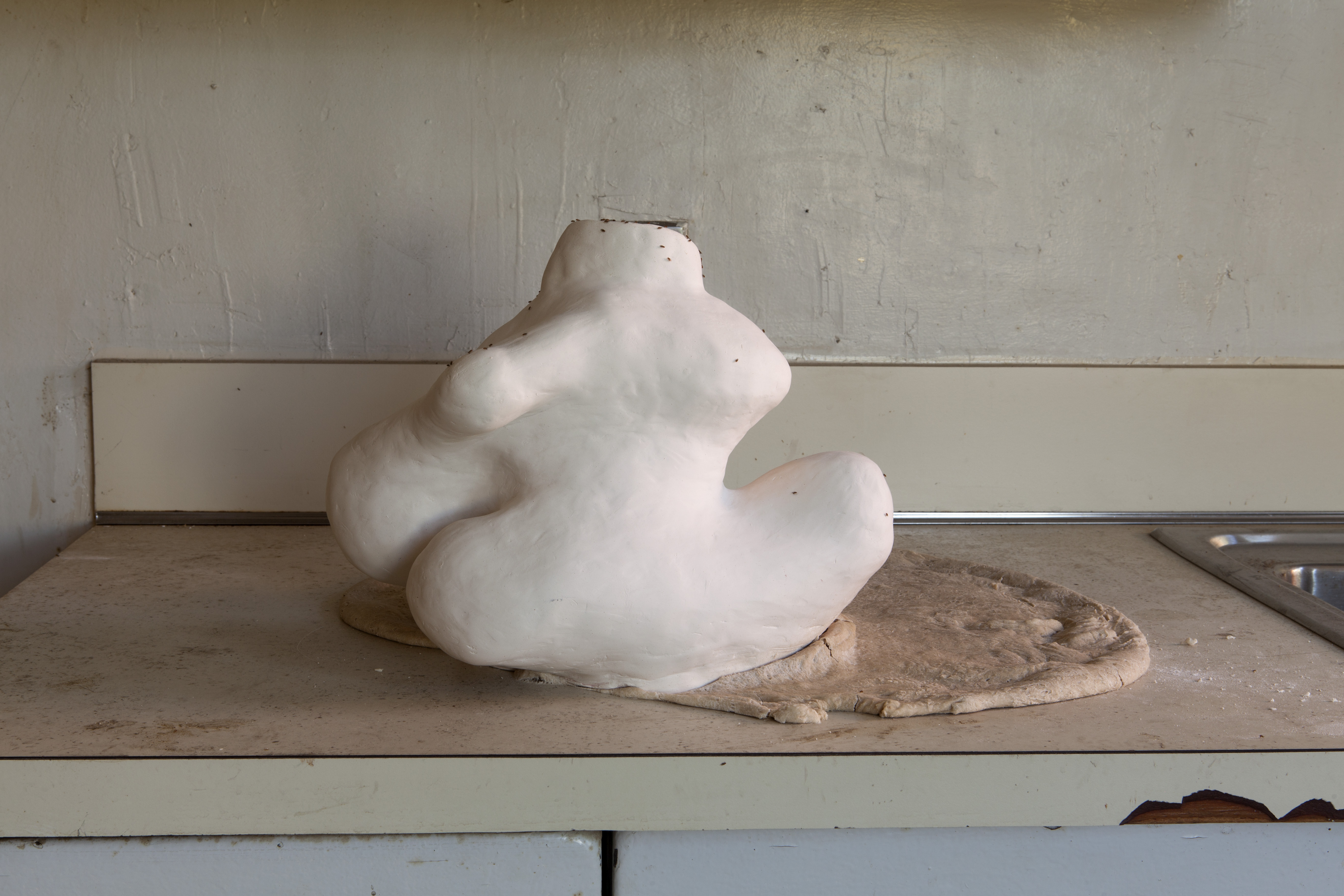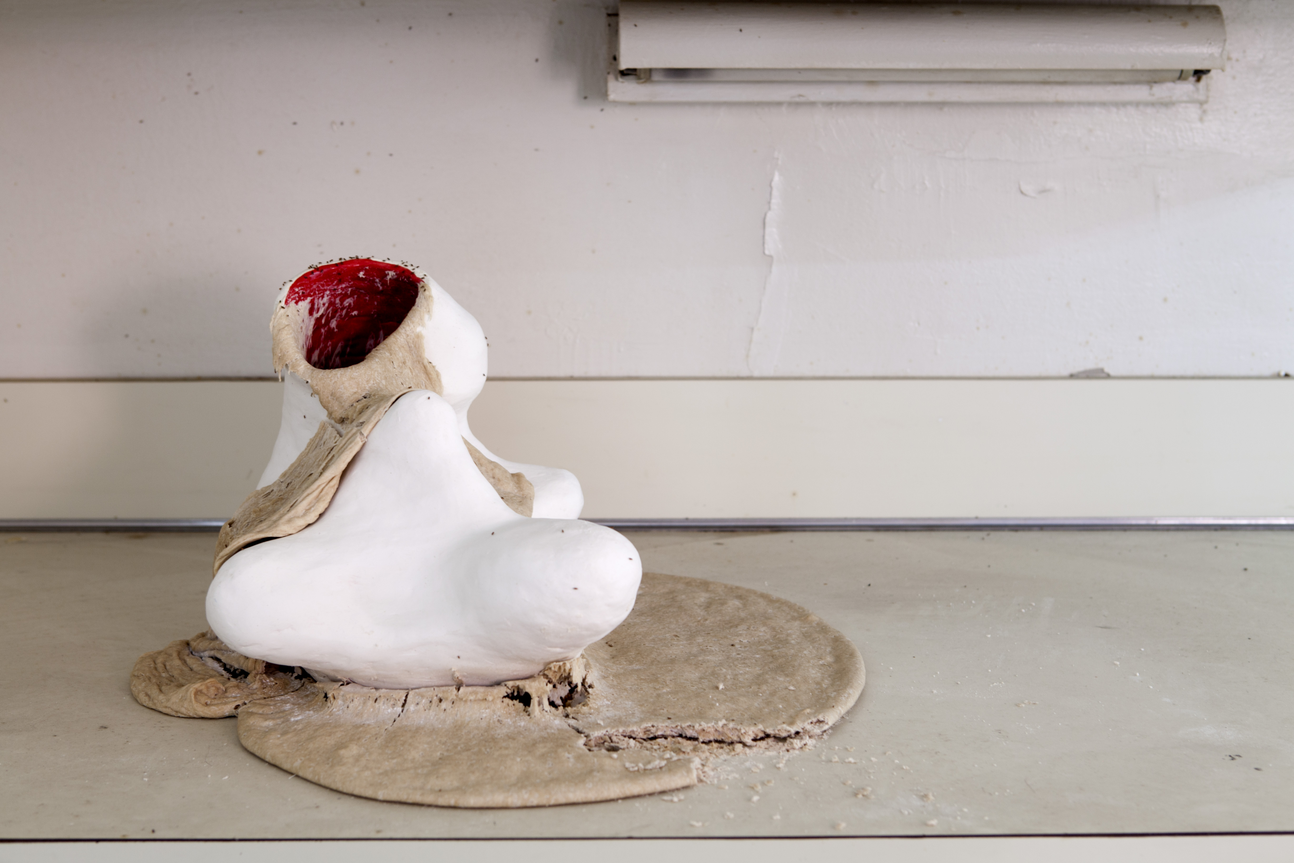 Dough is one of the oldest forms of sustenance, along with beer, predating (and inciting the need for) agriculture. Yeast, the leavening and fermentation agent, is a naturally occurring fungus, found on the hulls of wheats and grains, as well as on many other plants and even humans. Dough has sensual qualities, with it’s sweet brewing smell, it’s soft yet strong texture, its curves, bumps, bubbles, and natural impulses. In Ancient Greece, dough was shaped into phallic forms and baked hard, not for eating but for dildos called olisbo-kollix. Dough relates directly with the human body, hard and soft, slits, flakes, curves, alive, dying, reproducing, growing, shrinking, consuming and being consumed. Kneaded and needed.